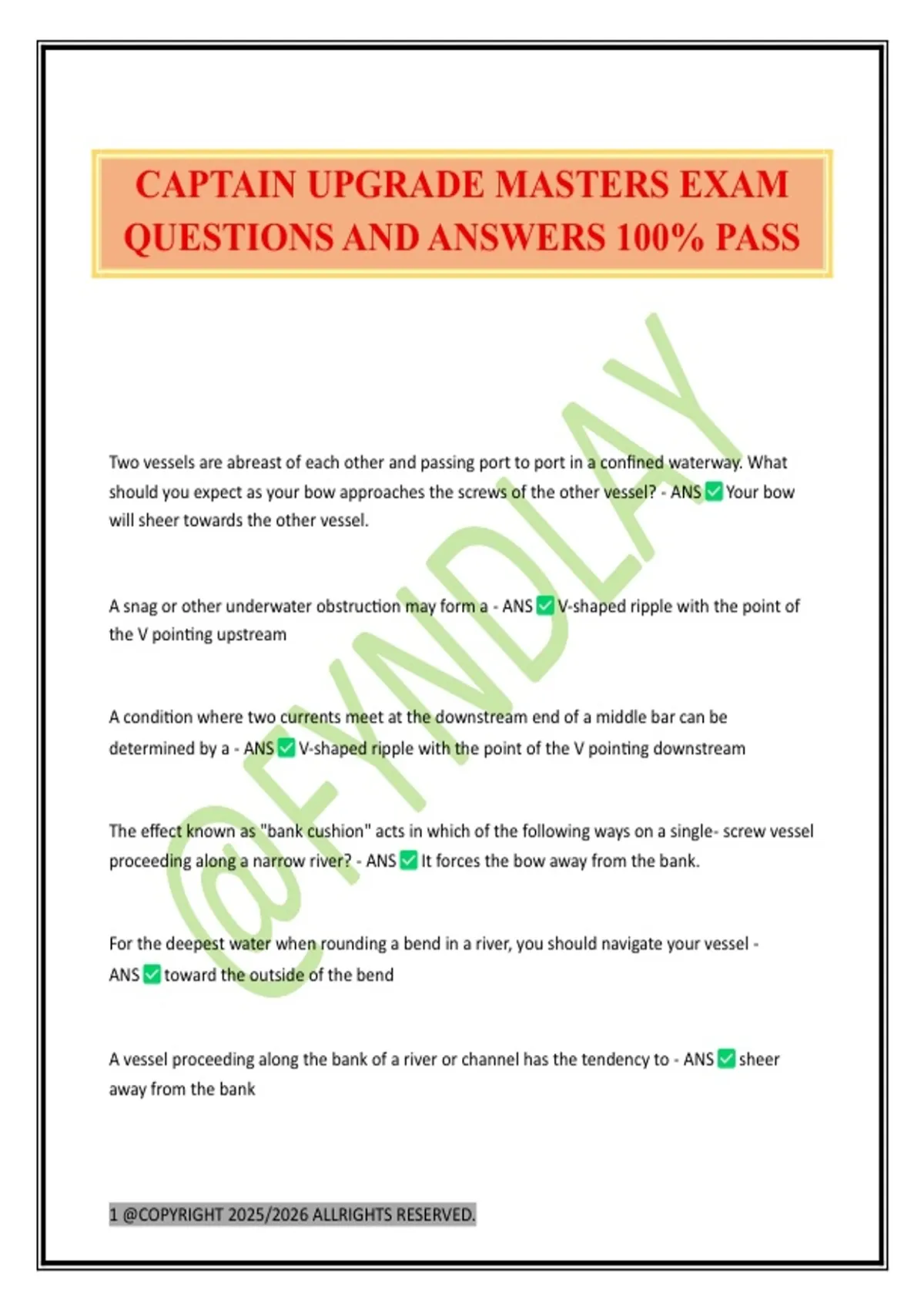 CAPTAIN UPGRADE MASTERS EXAM QUESTIONS AND ANSWERS 100% PASS