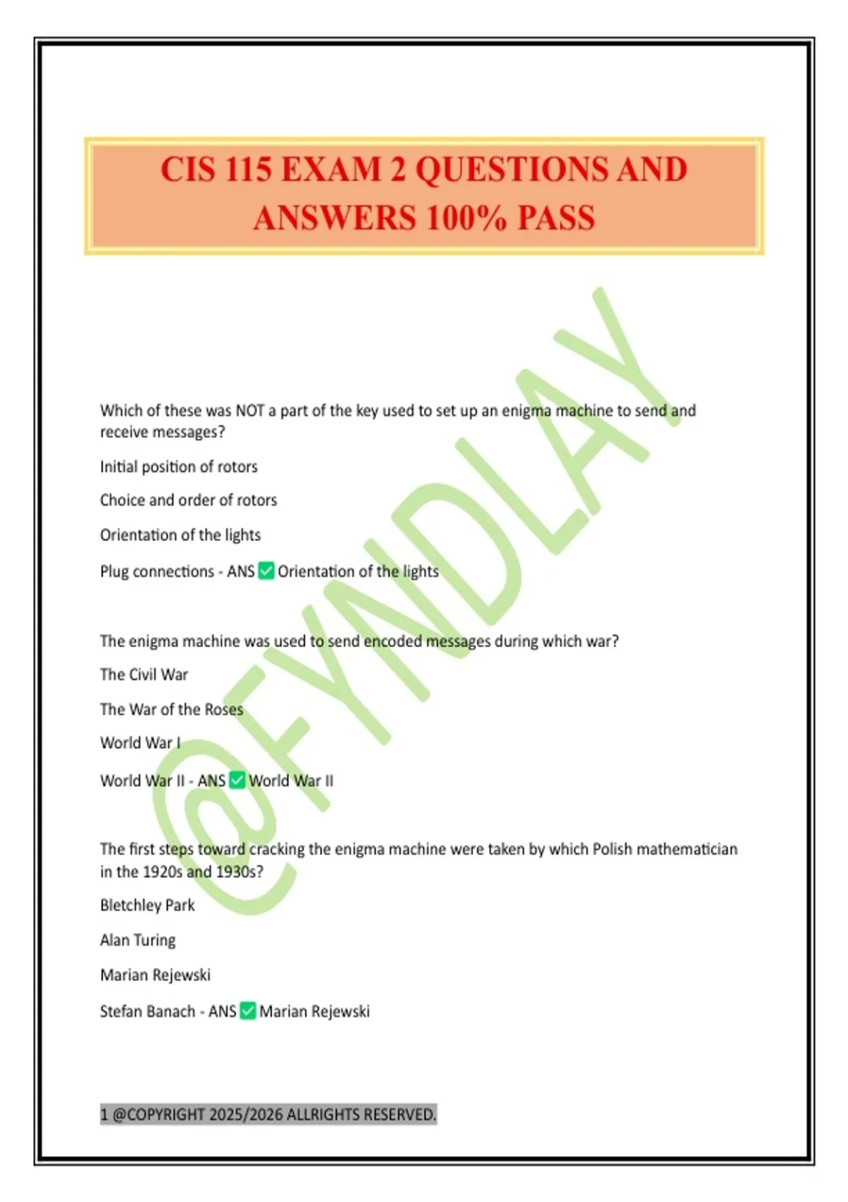 CIS 115 EXAM 2 QUESTIONS AND ANSWERS 100% PASS