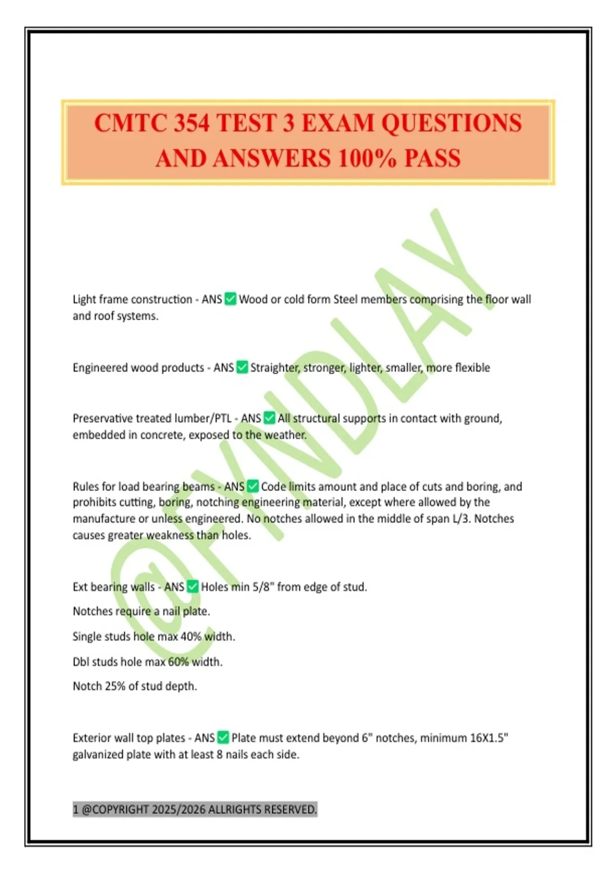 CMTC 354 TEST 3 EXAM QUESTIONS AND ANSWERS 100% PASS