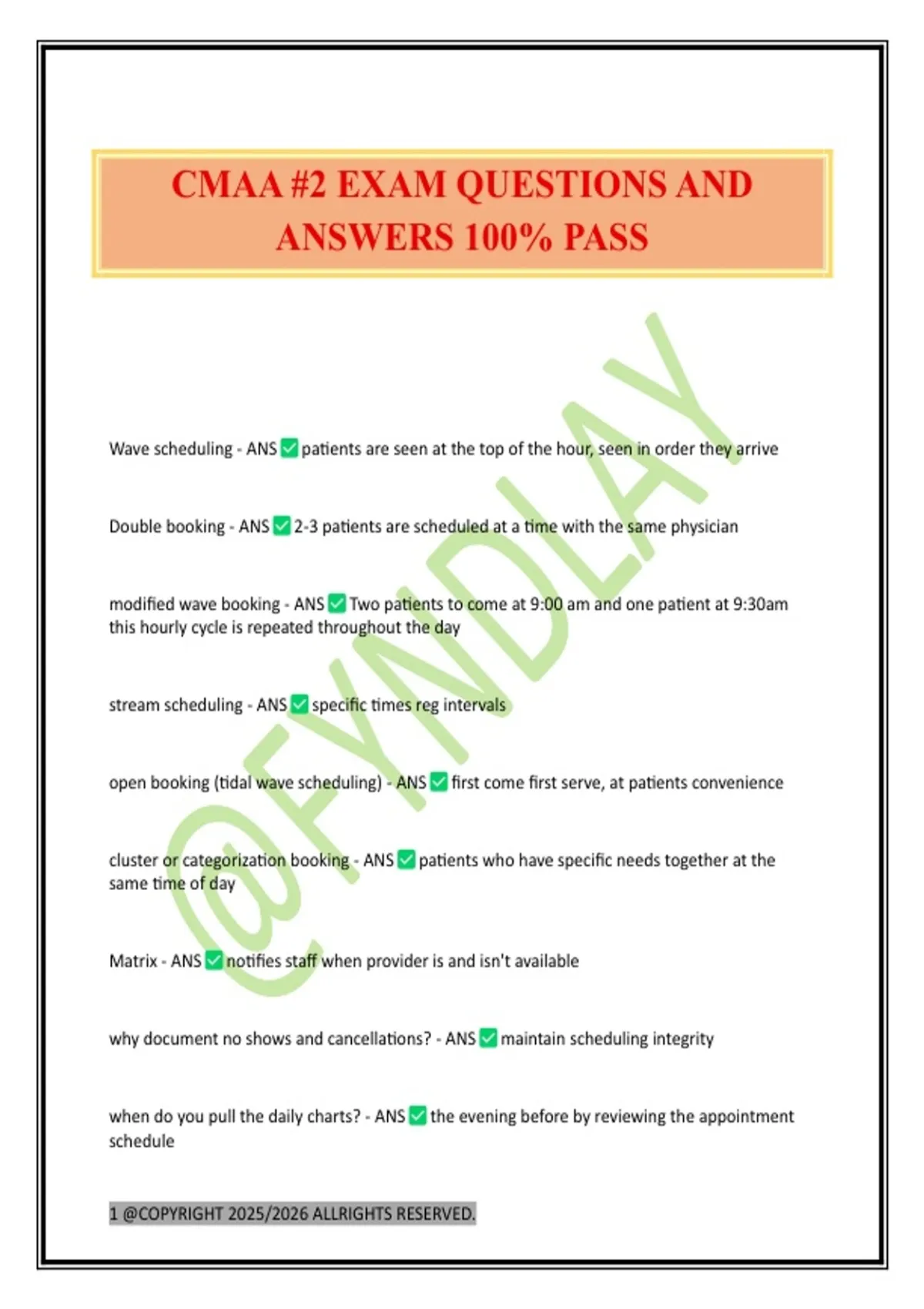 CMAA #2 EXAM QUESTIONS AND ANSWERS 100% PASS