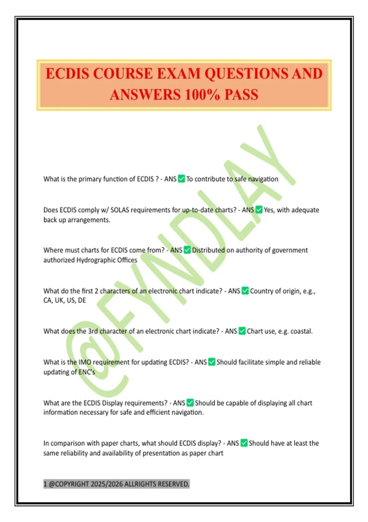 ECDIS COURSE EXAM QUESTIONS AND ANSWERS 100% PASS
