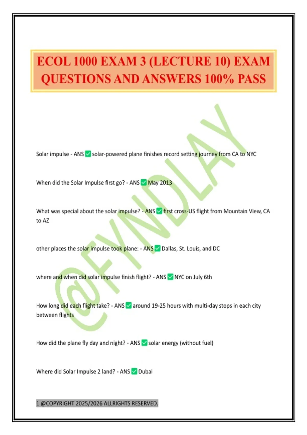 QUESTIONS AND ANSWERS 100% PASS