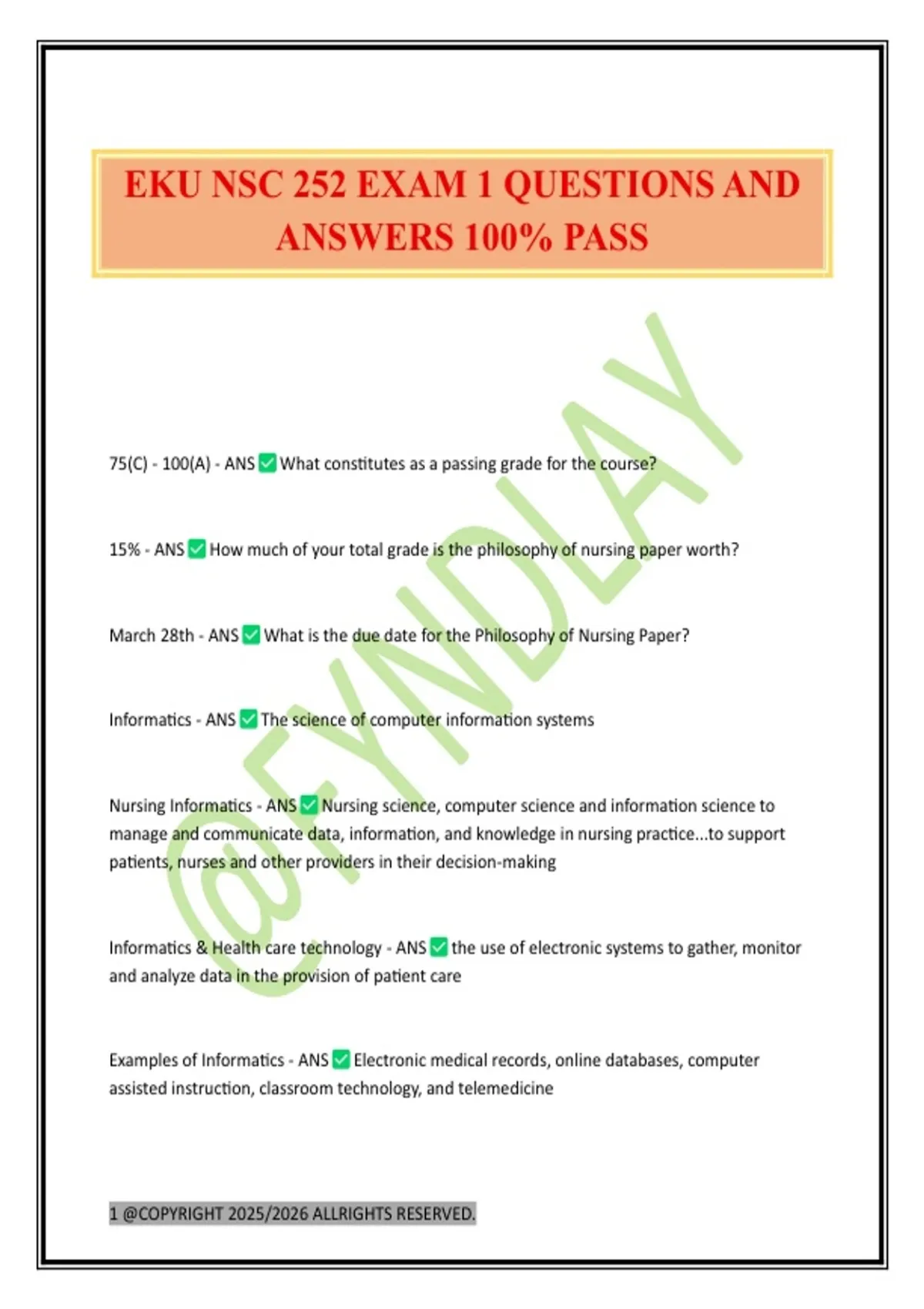 EKU NSC 252 EXAM 1 QUESTIONS AND