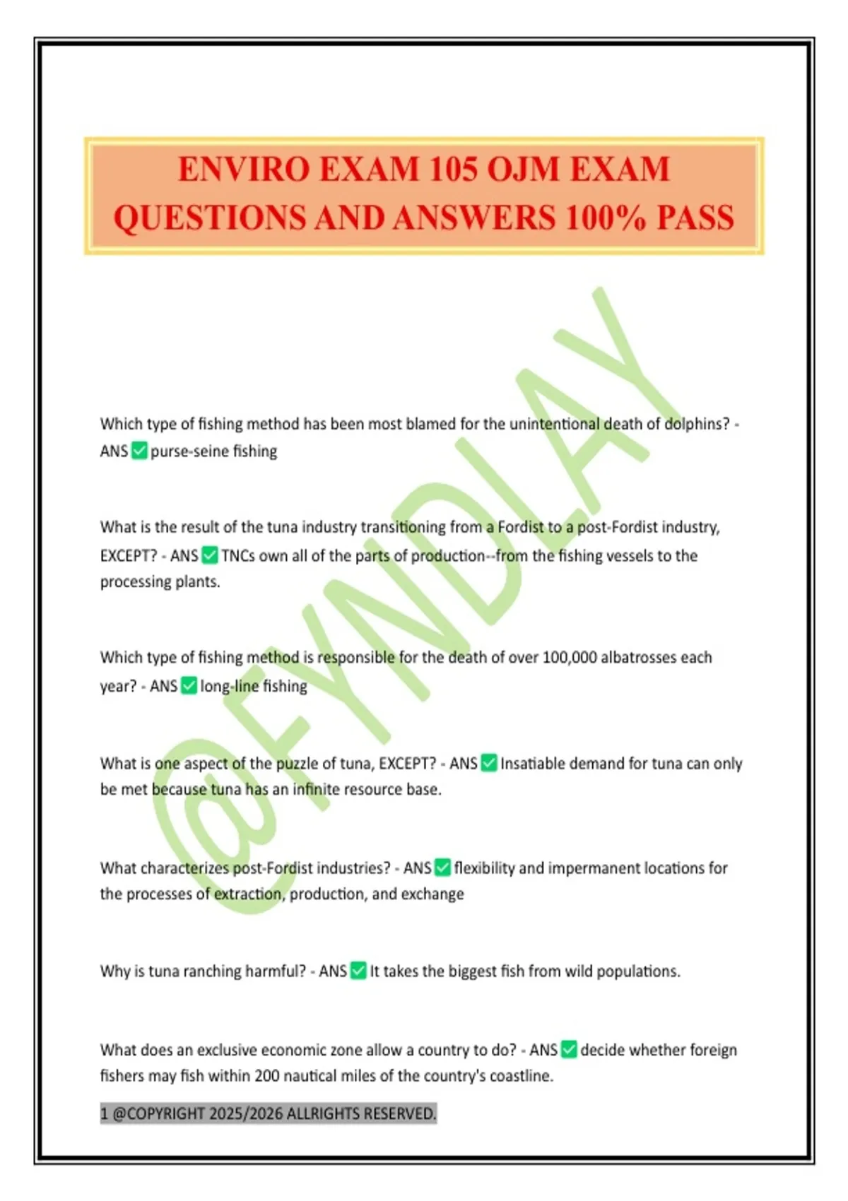 ENVIRO EXAM 105 OJM EXAM QUESTIONS AND ANSWERS 100% PASS