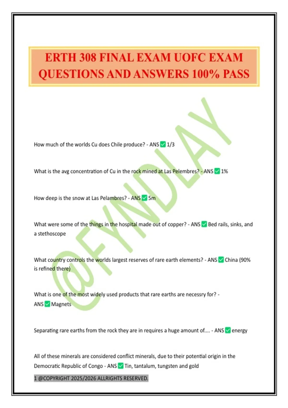 ERTH 308 FINAL EXAM UOFC EXAM QUESTIONS AND ANSWERS 100% PASS