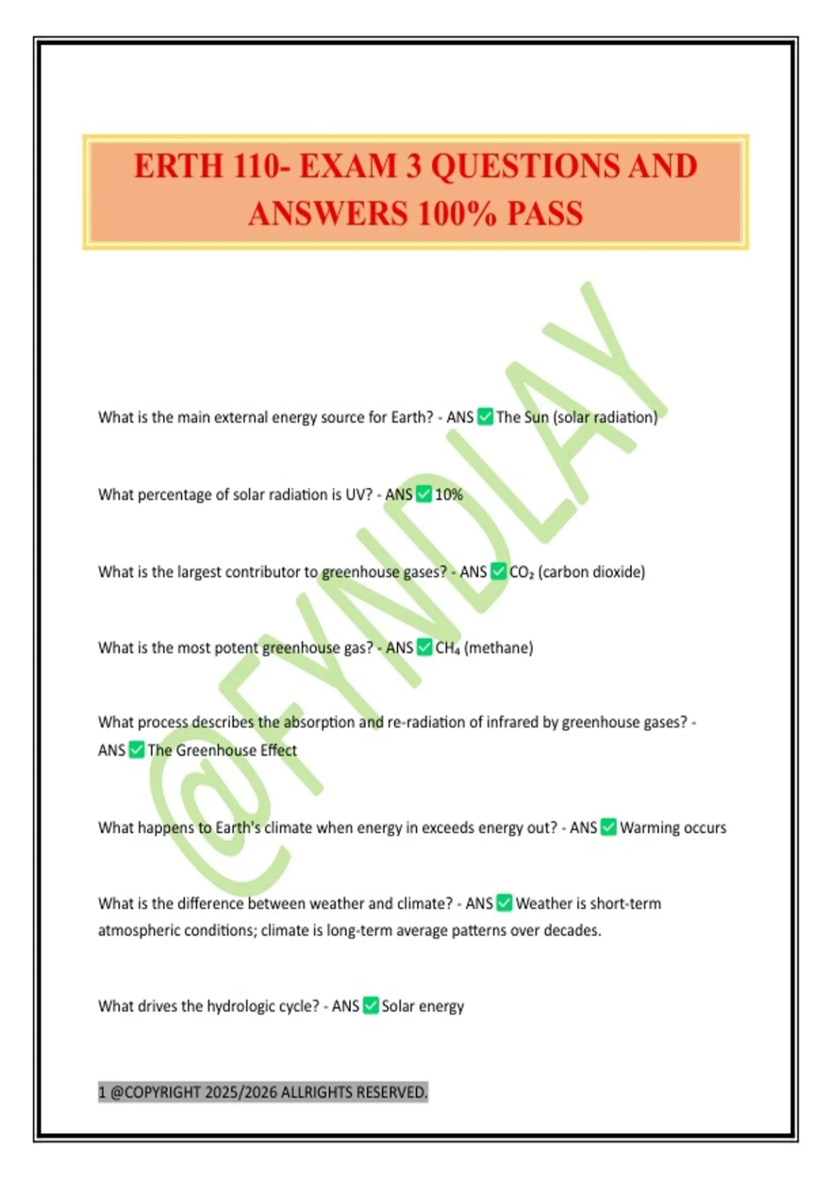 ERTH 110- EXAM 3 QUESTIONS AND ANSWERS 100% PASS