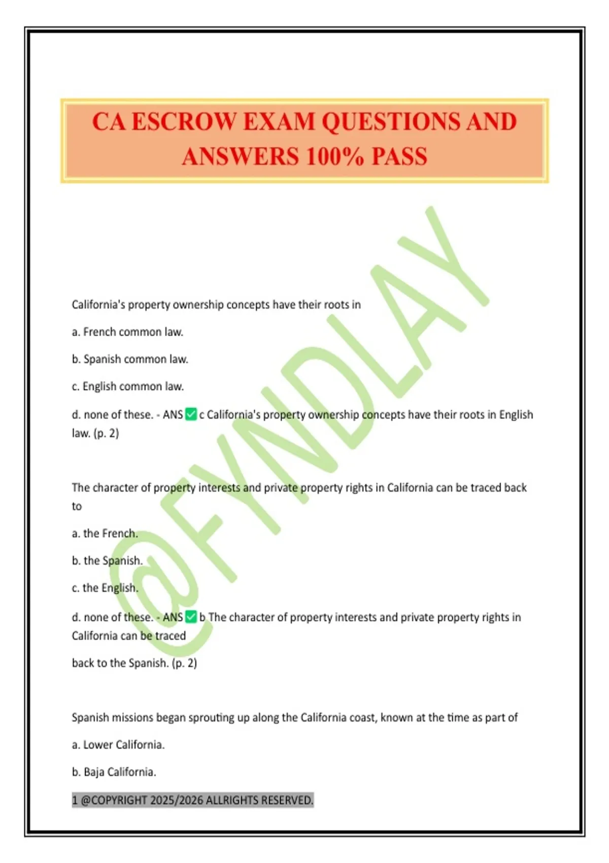 CA ESCROW EXAM QUESTIONS AND ANSWERS 100% PASS