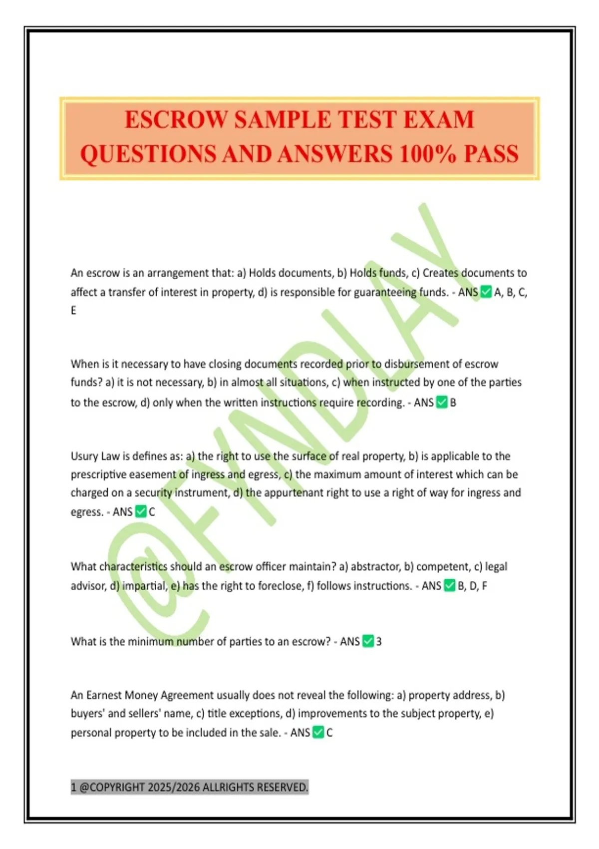 ESCROW SAMPLE TEST EXAM