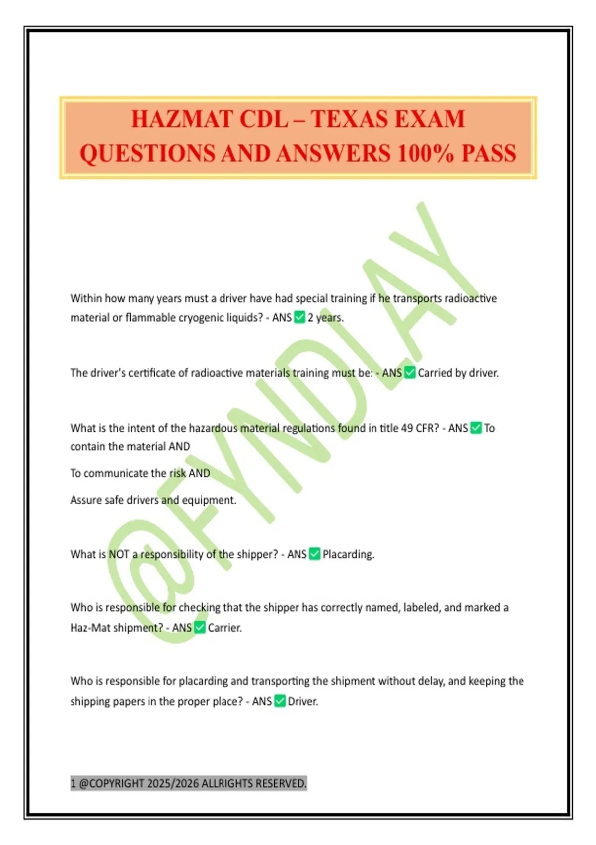 HAZMAT CDL – TEXAS EXAM