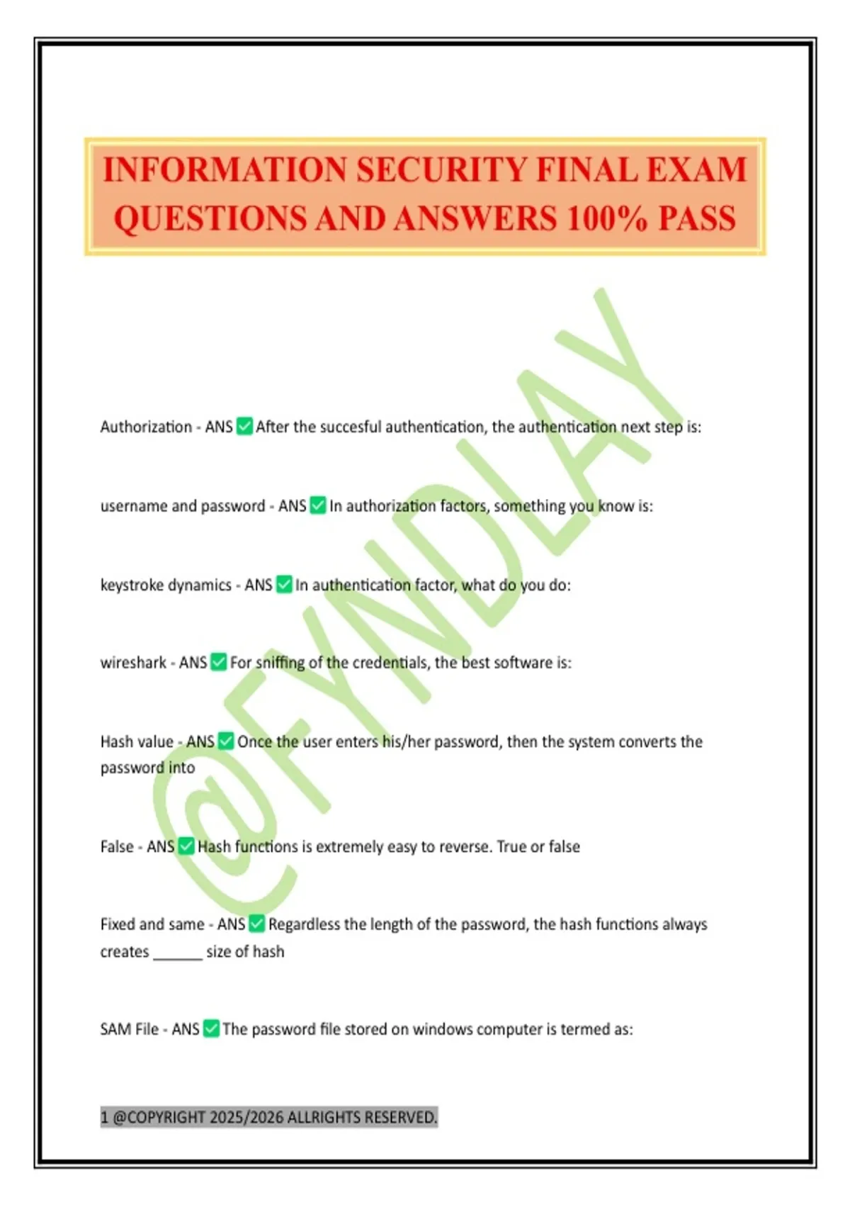 INFORMATION SECURITY FINAL EXAM QUESTIONS AND ANSWERS 100% PASS