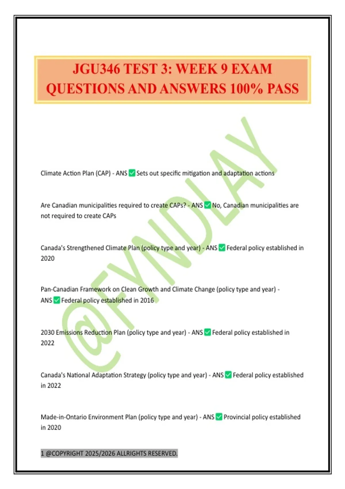 JGU346 TEST 3: WEEK 9 EXAM QUESTIONS AND ANSWERS 100% PASS