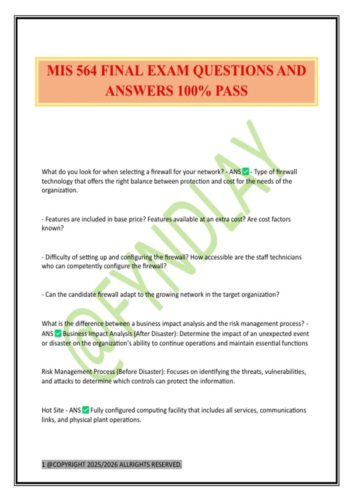 MIS 564 FINAL EXAM QUESTIONS AND