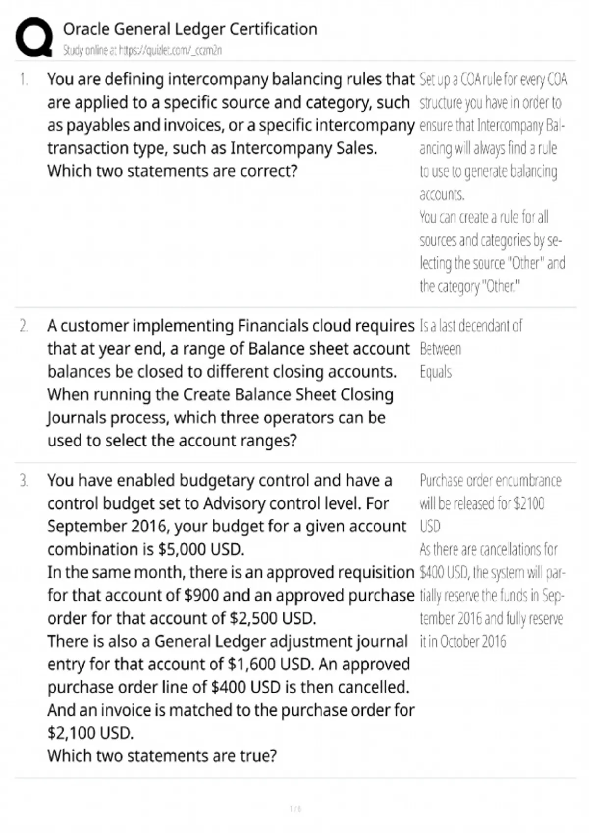 Oracle General Ledger Certification / Study Guide & Practice Exam / Financials Cloud / 2025 Update / Score 100%