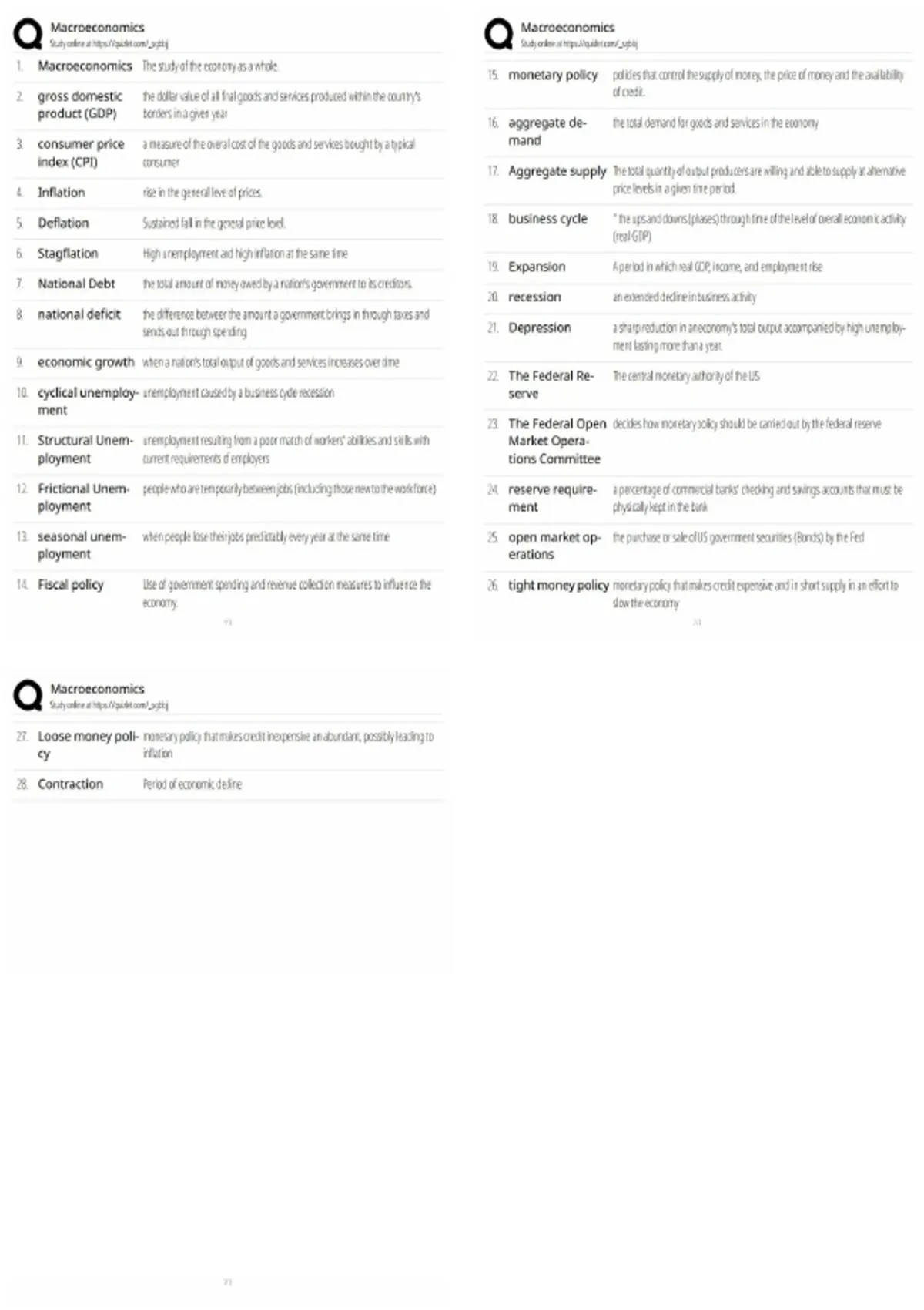 macroeconomics study guide