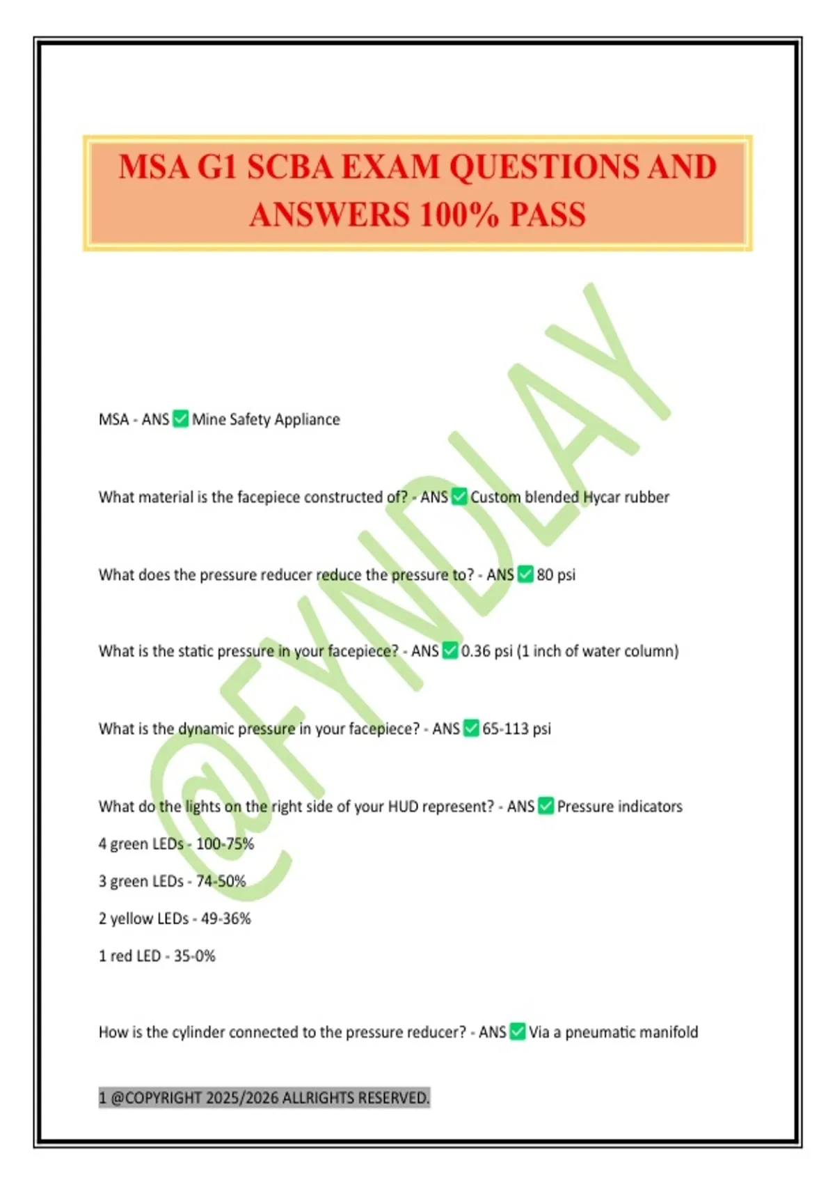 MSA G1 SCBA EXAM QUESTIONS AND