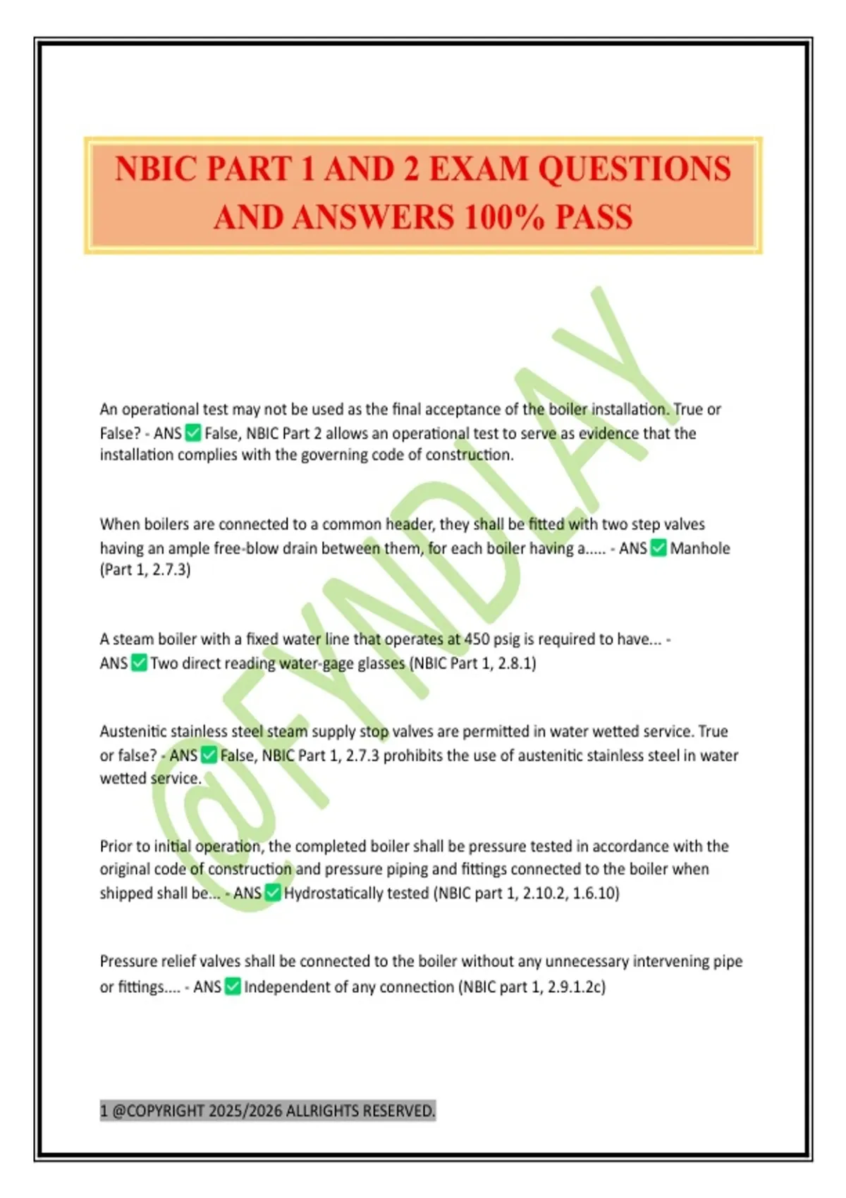 NBIC PART 1 AND 2 EXAM QUESTIONS AND ANSWERS 100% PASS