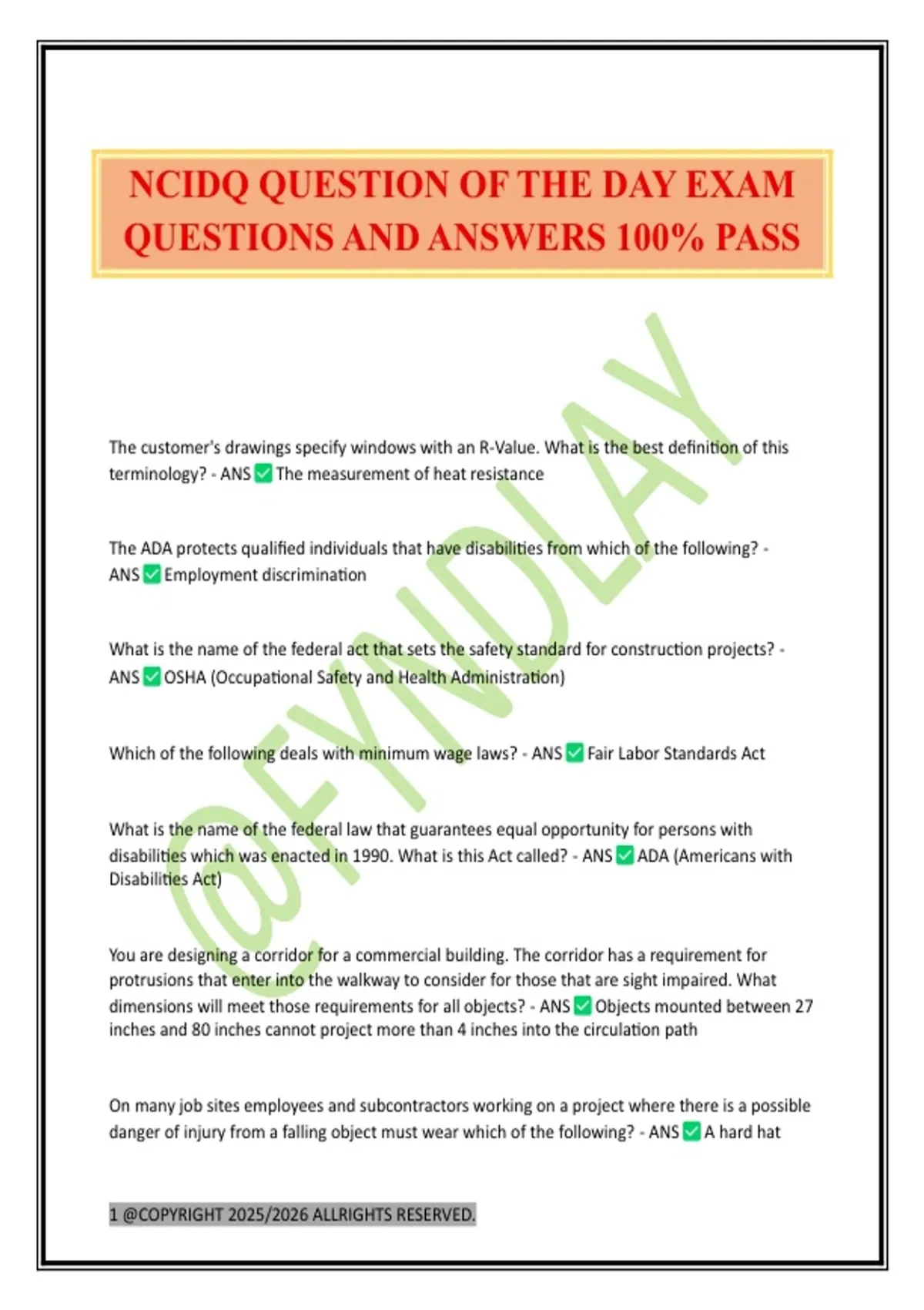 NCIDQ QUESTION OF THE DAY EXAM QUESTIONS AND ANSWERS 100% PASS