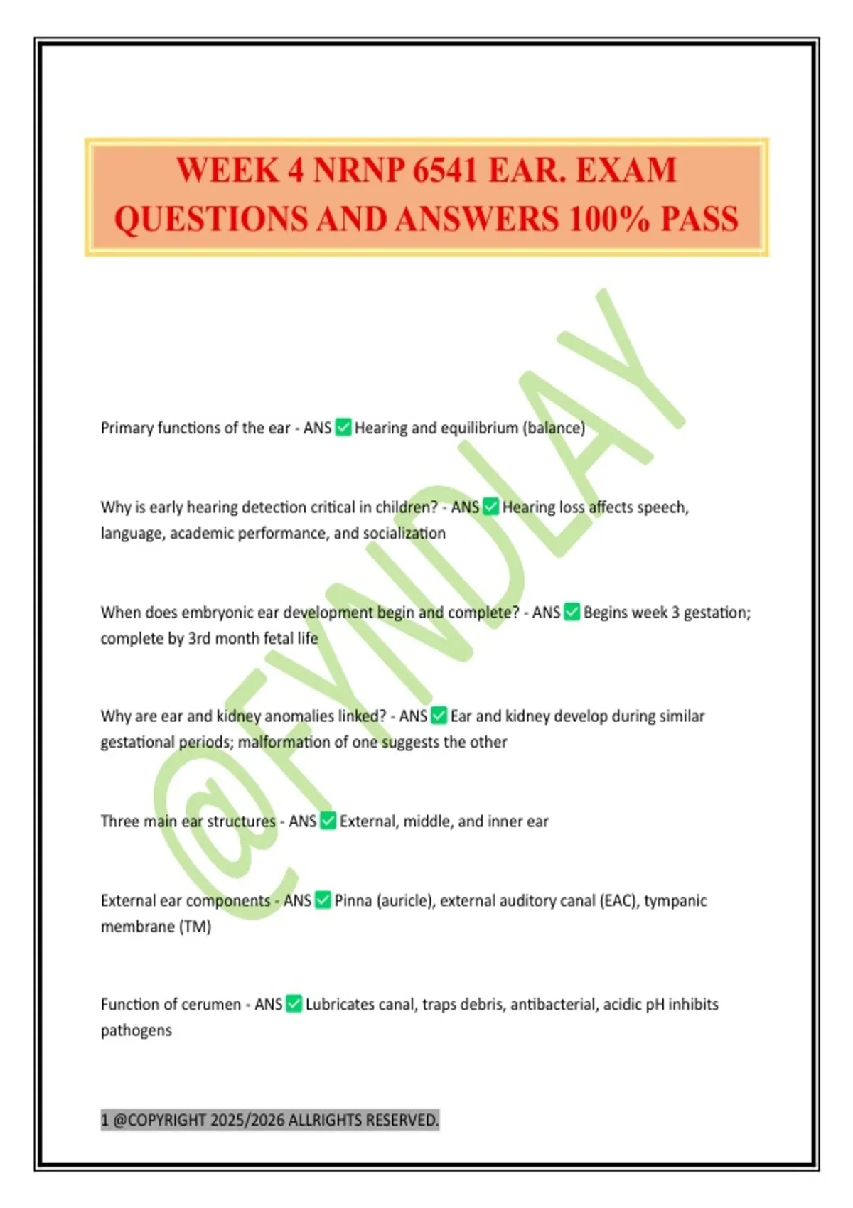WEEK 4 NRNP 6541 EAR. EXAM QUESTIONS AND ANSWERS 100% PASS