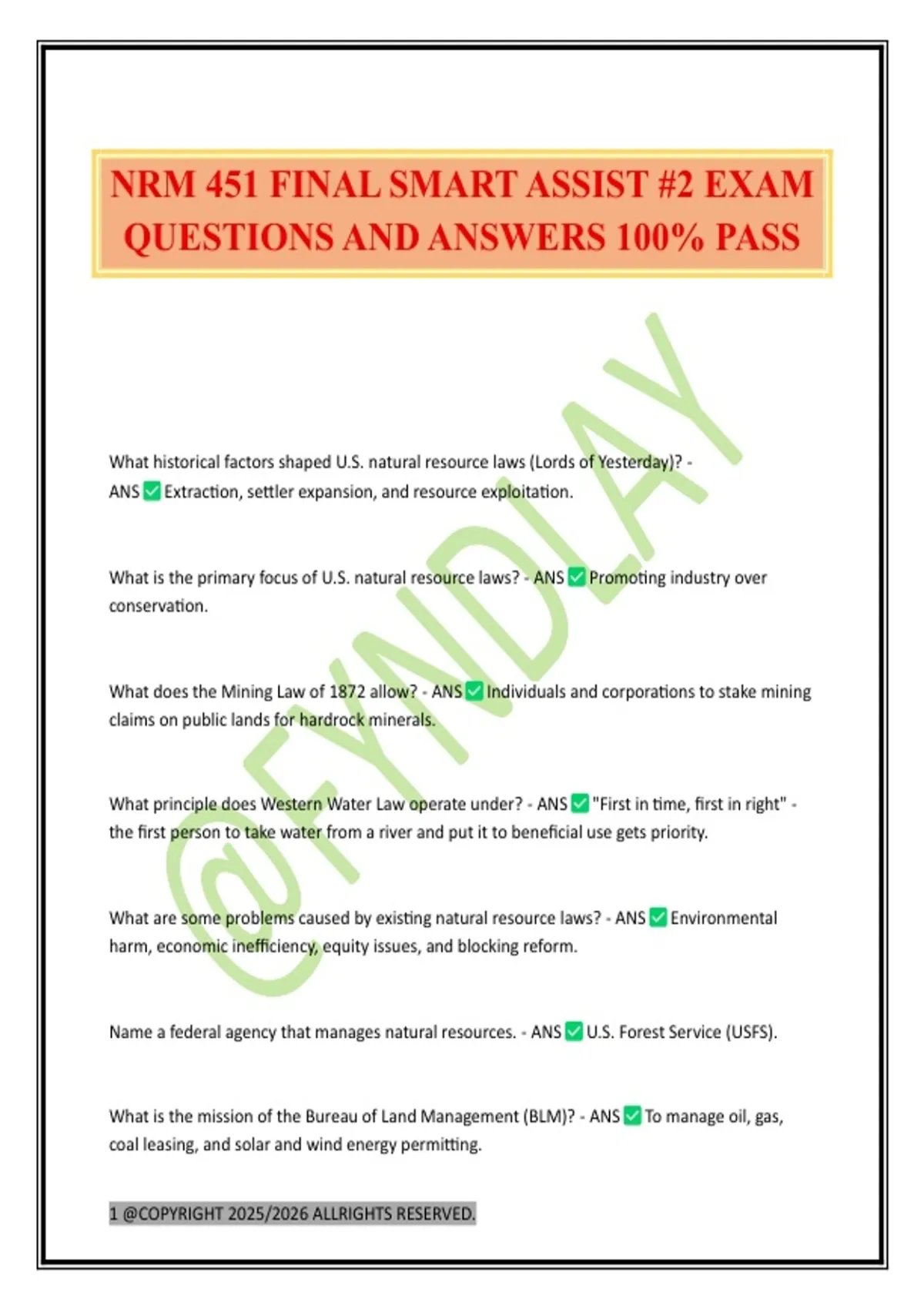 NRM 451 FINAL SMART ASSIST #2 EXAM QUESTIONS AND ANSWERS 100% PASS