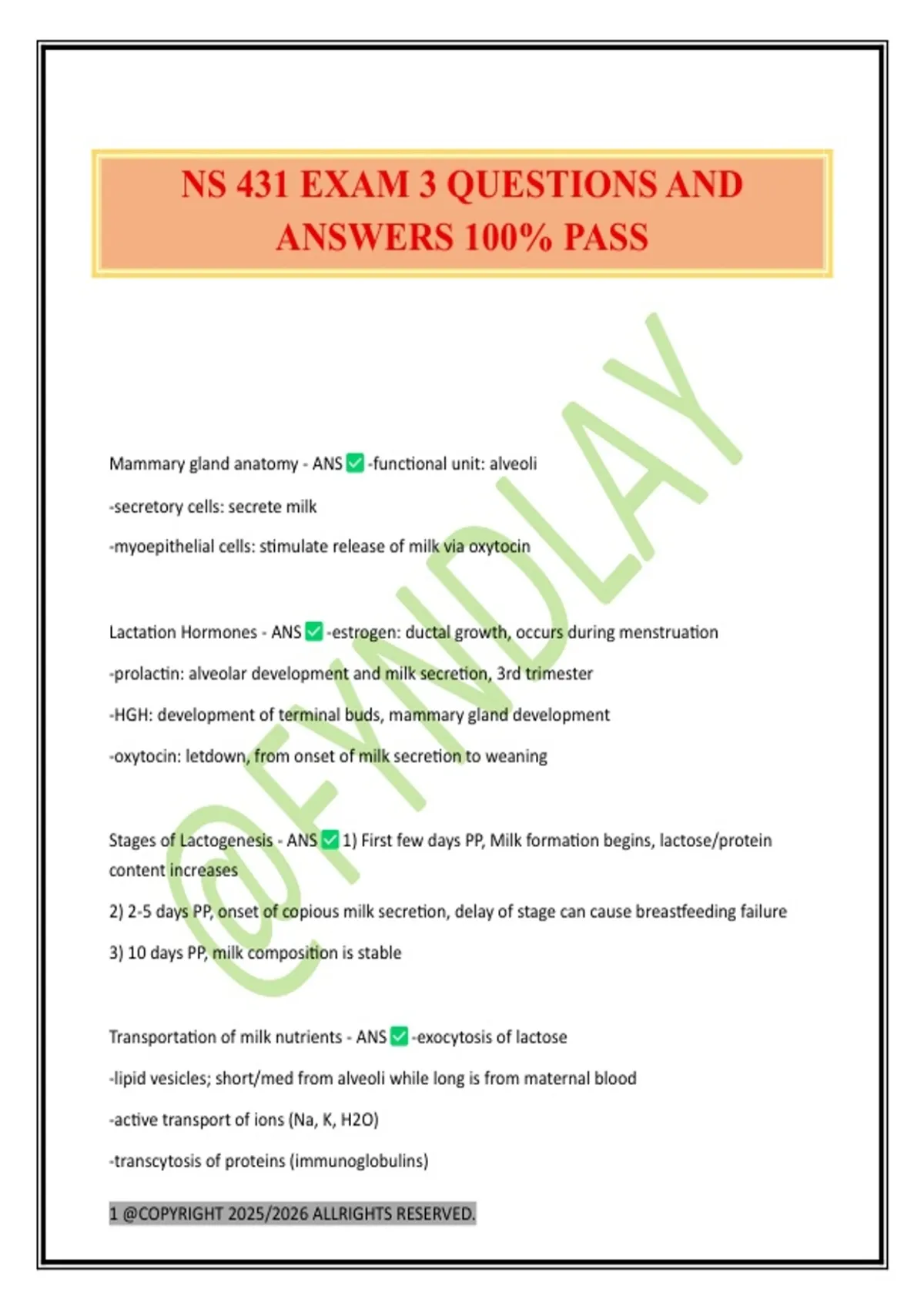 NS 431 EXAM 3 QUESTIONS AND ANSWERS 100% PASS
