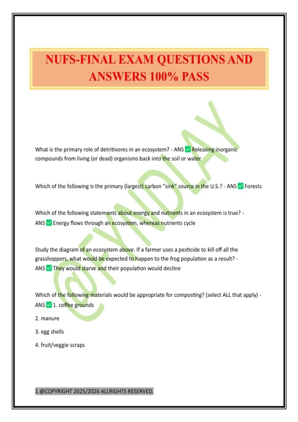 NUFS-FINAL EXAM QUESTIONS AND ANSWERS 100% PASS