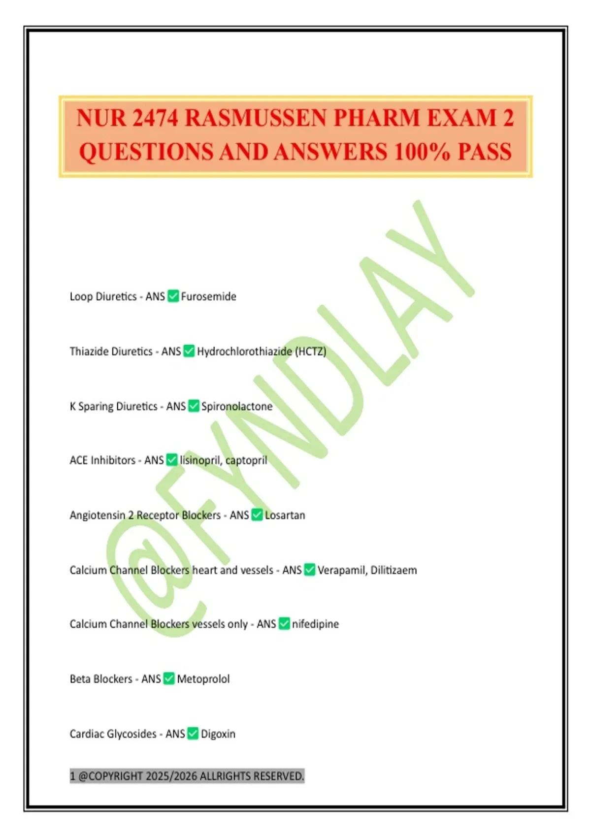 NUR 2474 RASMUSSEN PHARM EXAM 2 QUESTIONS AND ANSWERS 100% PASS