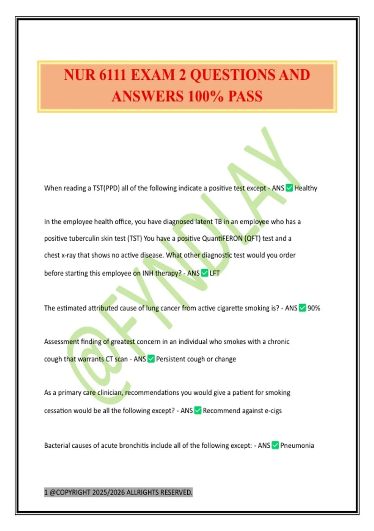 NUR 6111 EXAM 2 QUESTIONS AND ANSWERS 100% PASS