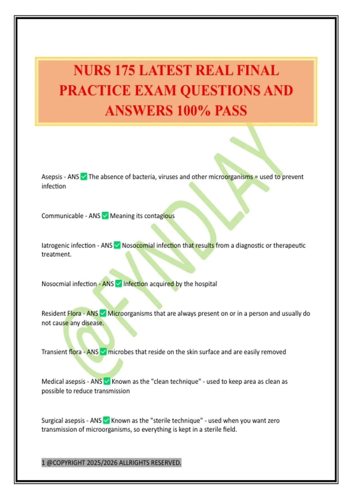 NURS 175 LATEST REAL FINAL PRACTICE EXAM QUESTIONS AND ANSWERS 100% PASS