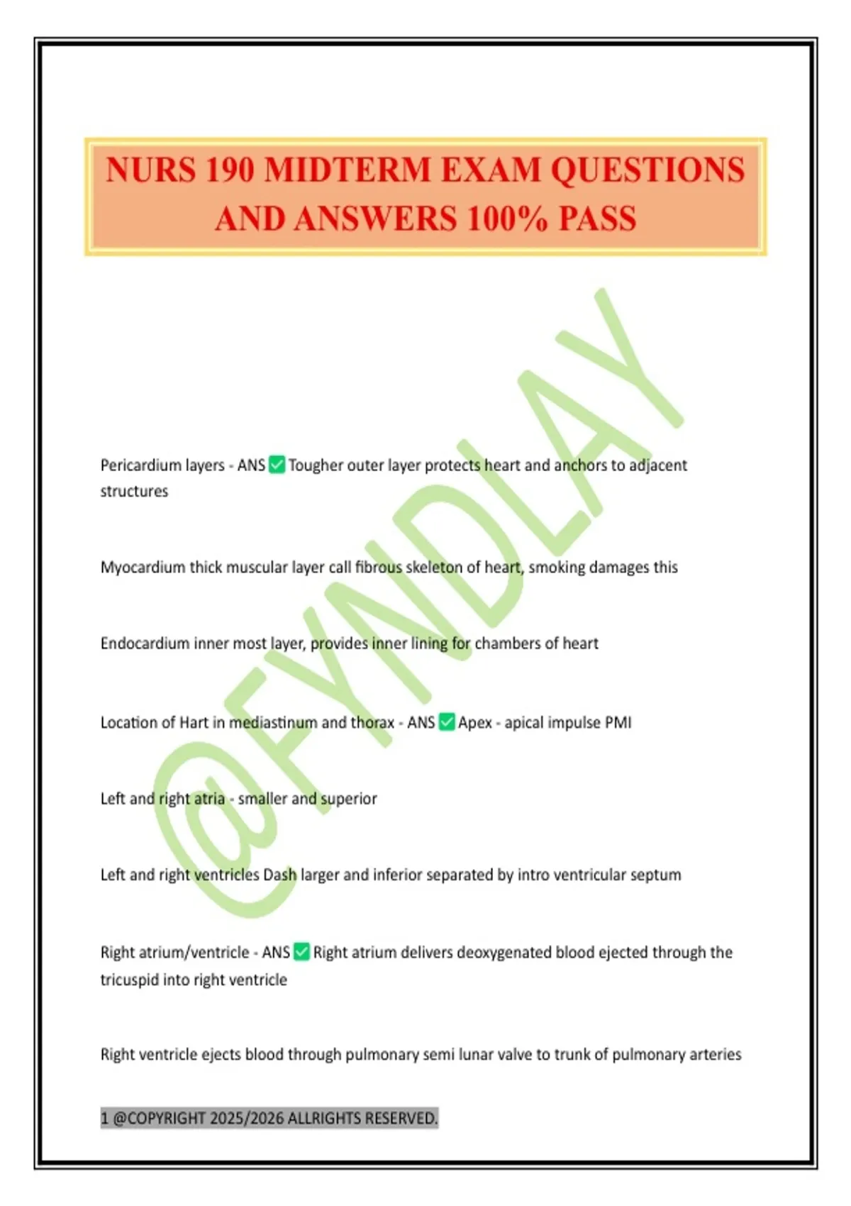 NURS 190 MIDTERM EXAM QUESTIONS AND ANSWERS 100% PASS