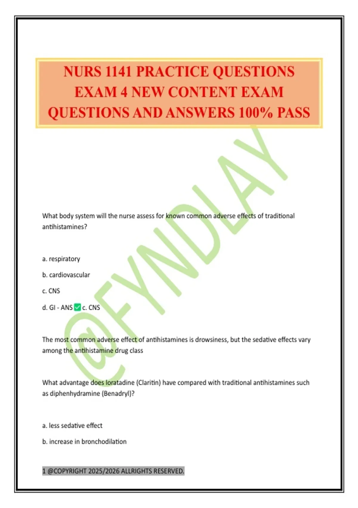 NURS 1141 PRACTICE QUESTIONS
