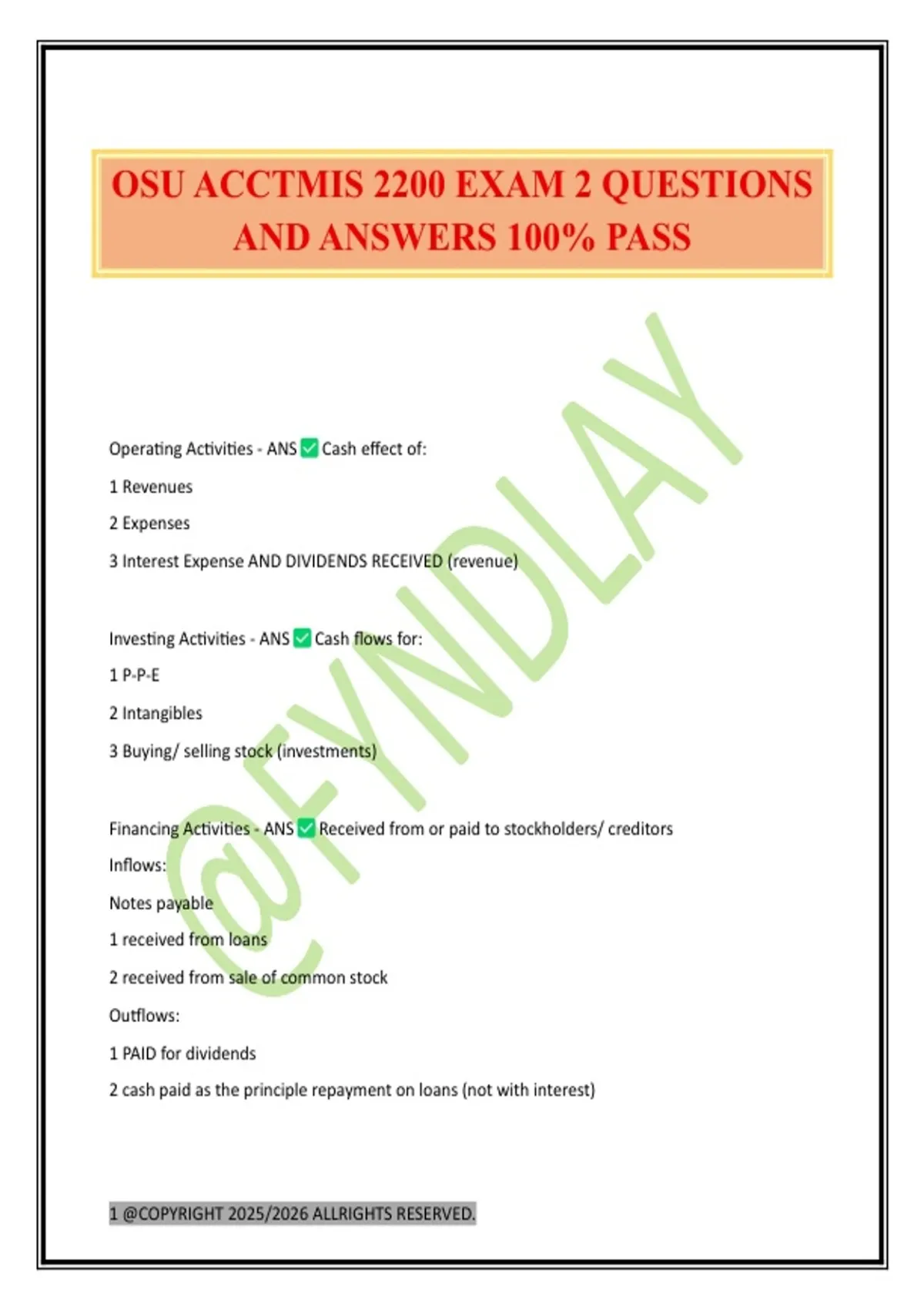 OSU ACCTMIS 2200 EXAM 2 QUESTIONS