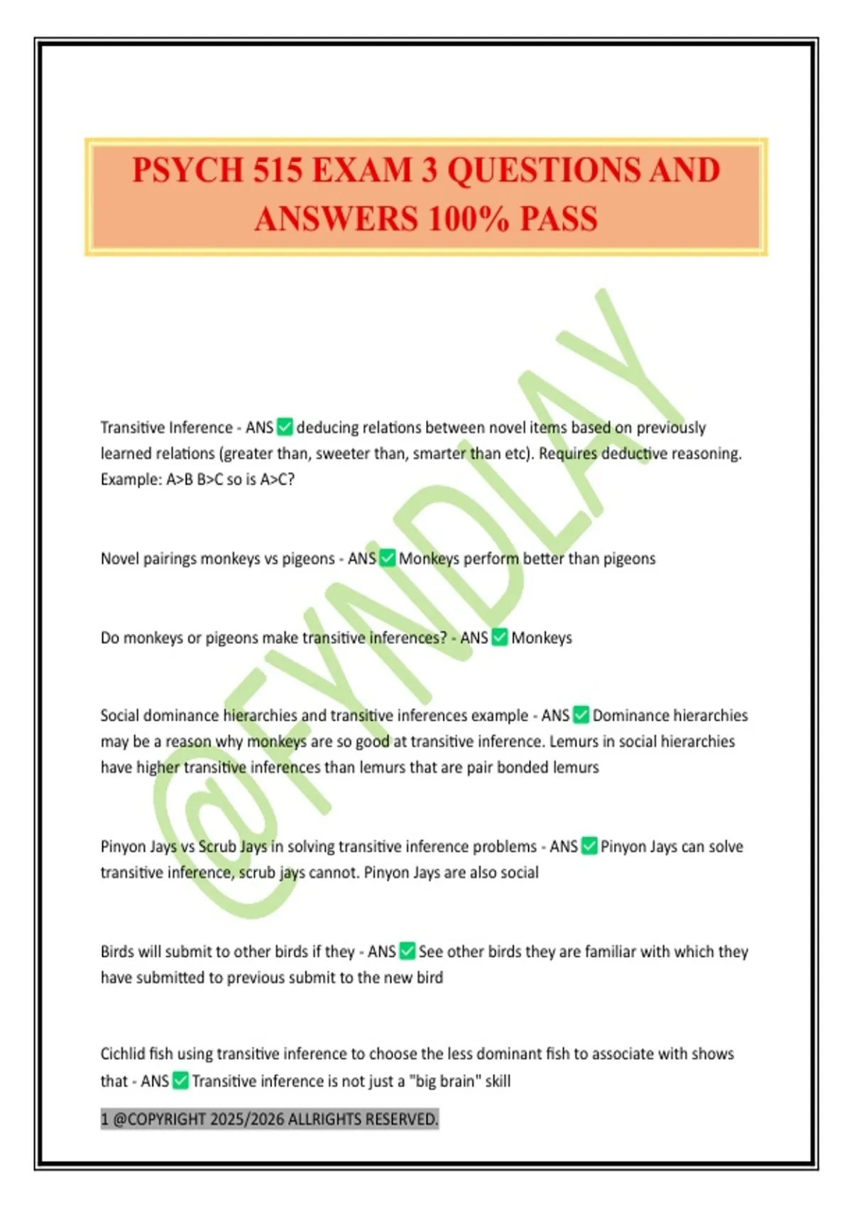 PSYCH 515 EXAM 3 QUESTIONS AND