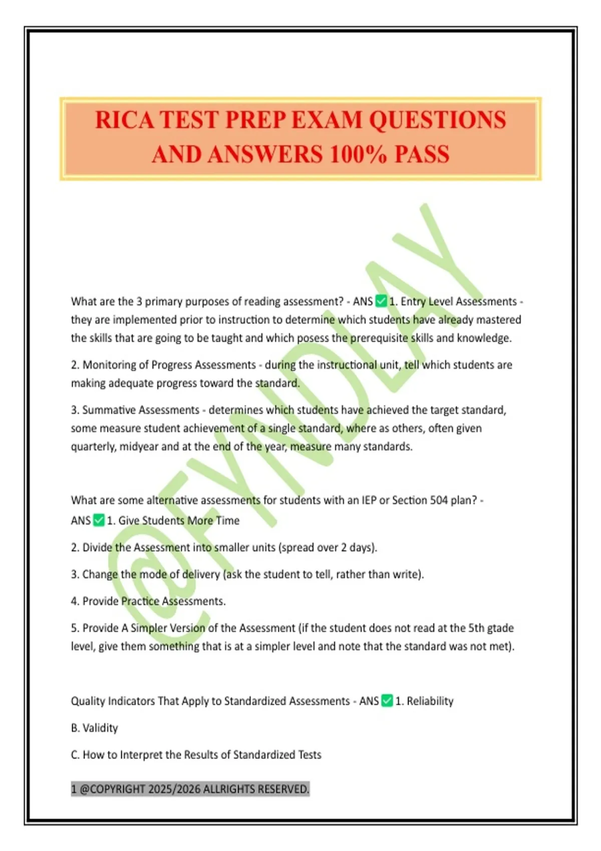 RICA TEST PREP EXAM QUESTIONS AND ANSWERS 100% PASS