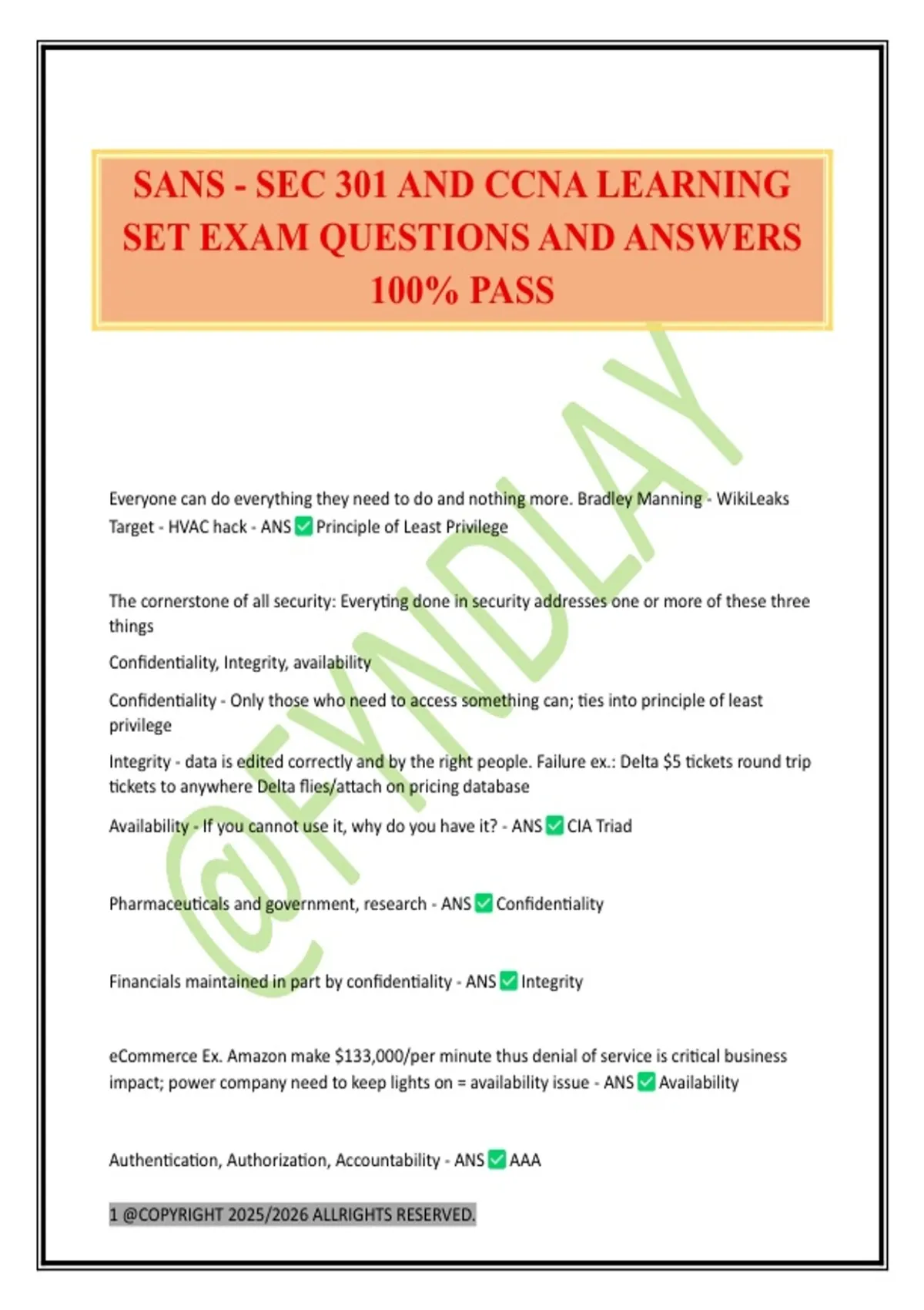 SANS - SEC 301 AND CCNA LEARNING SET EXAM QUESTIONS AND ANSWERS 100% PASS