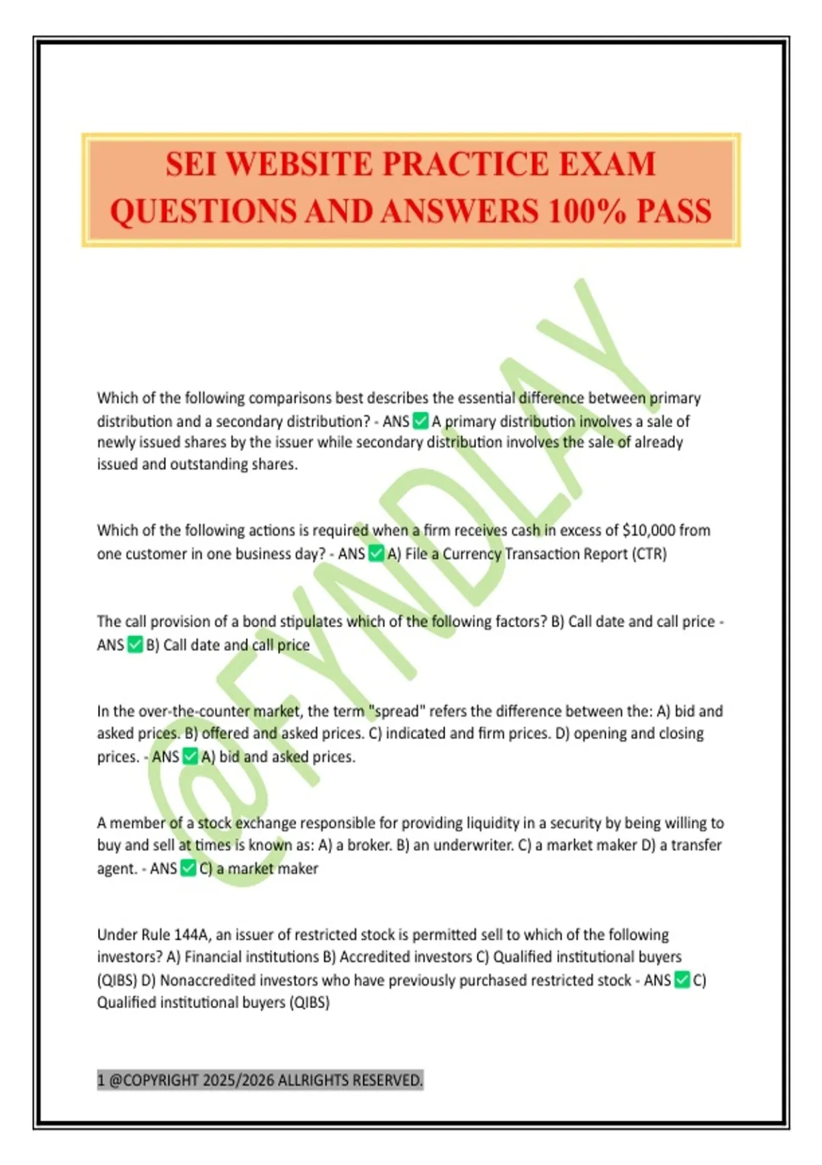 QUESTIONS AND ANSWERS 100% PASS