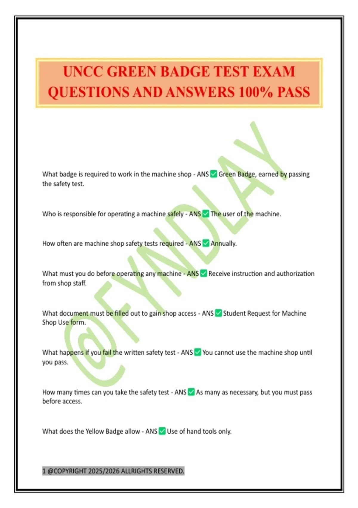 UNCC GREEN BADGE TEST EXAM QUESTIONS AND ANSWERS 100% PASS