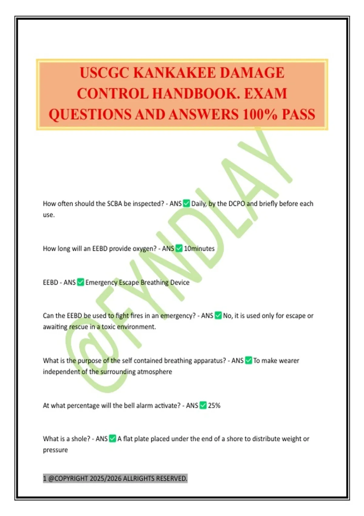 USCGC KANKAKEE DAMAGE CONTROL HANDBOOK. EXAM QUESTIONS AND ANSWERS 100% PASS