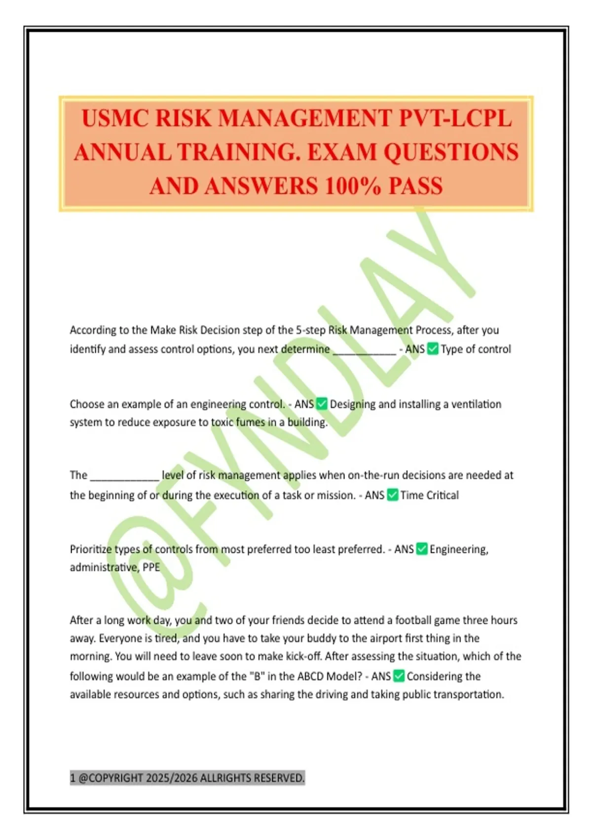 ANNUAL TRAINING. EXAM QUESTIONS