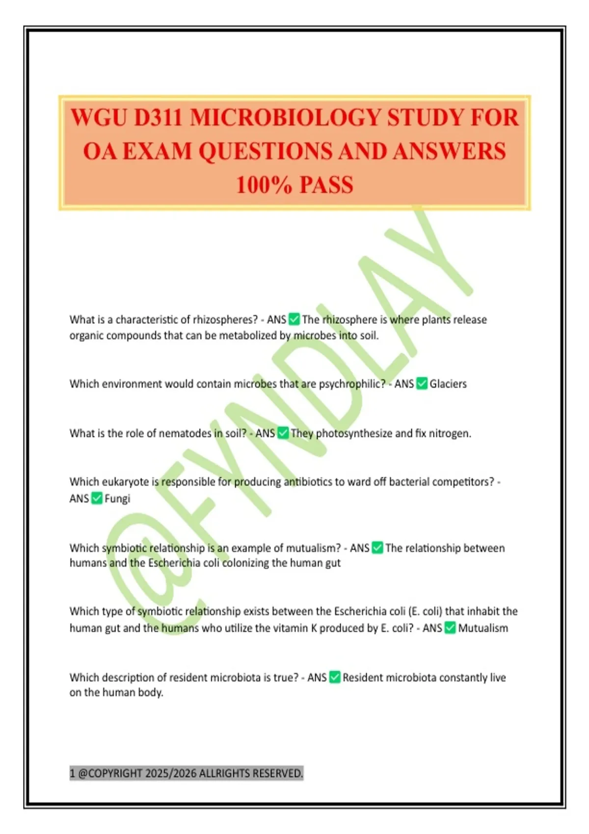 WGU D311 MICROBIOLOGY STUDY FOR OA EXAM QUESTIONS AND ANSWERS 100% PASS