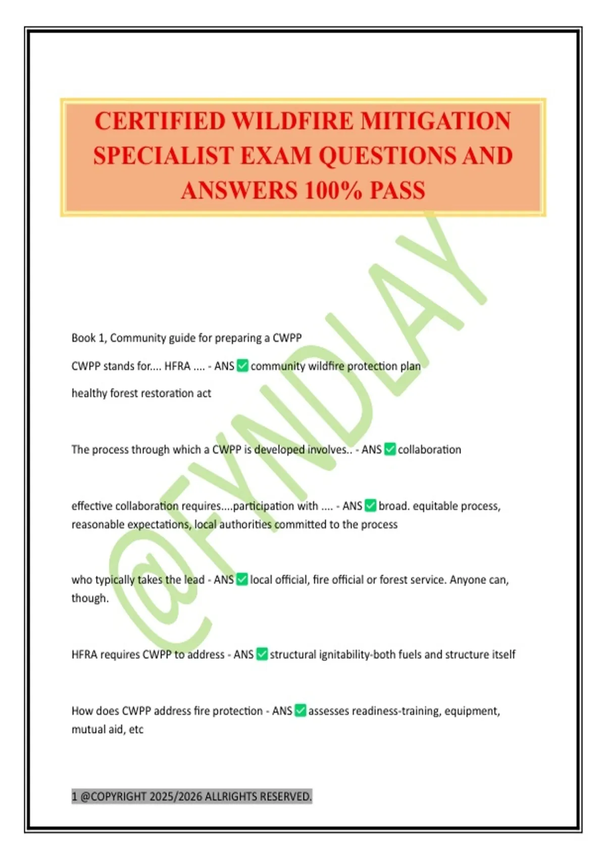 CWPP stands for.... HFRA .... - ANS community wildfire protection plan