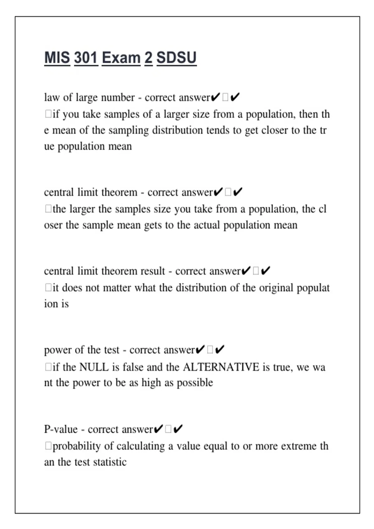 central limit theorem - correct answer✔ ✔