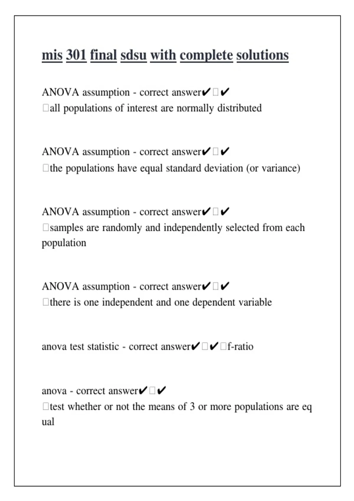 MIS 301 Final Exam Practice Questions and answers correctly solved 2024