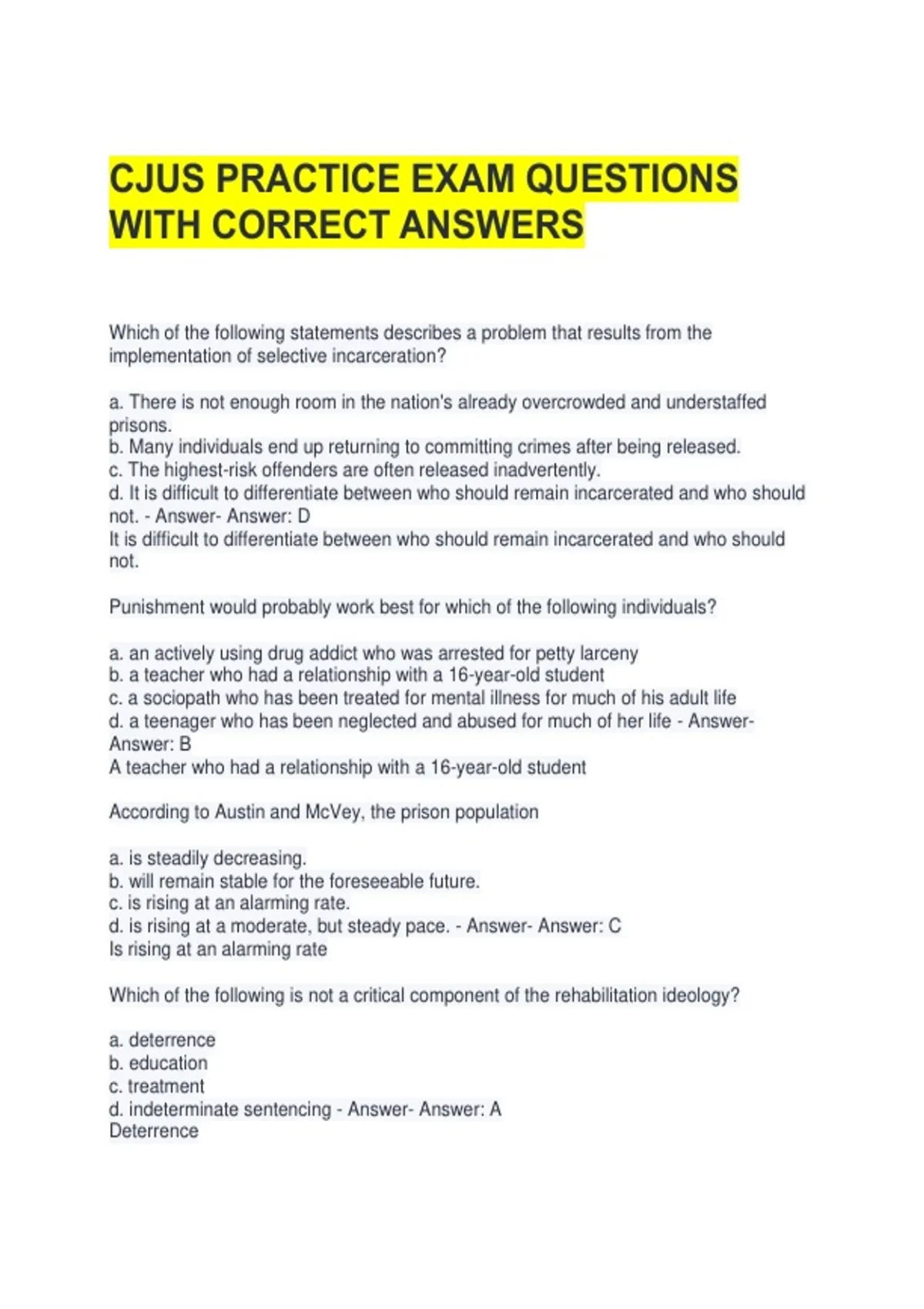 CJUS PRACTICE EXAM QUESTIONS WITH CORRECT ANSWERS