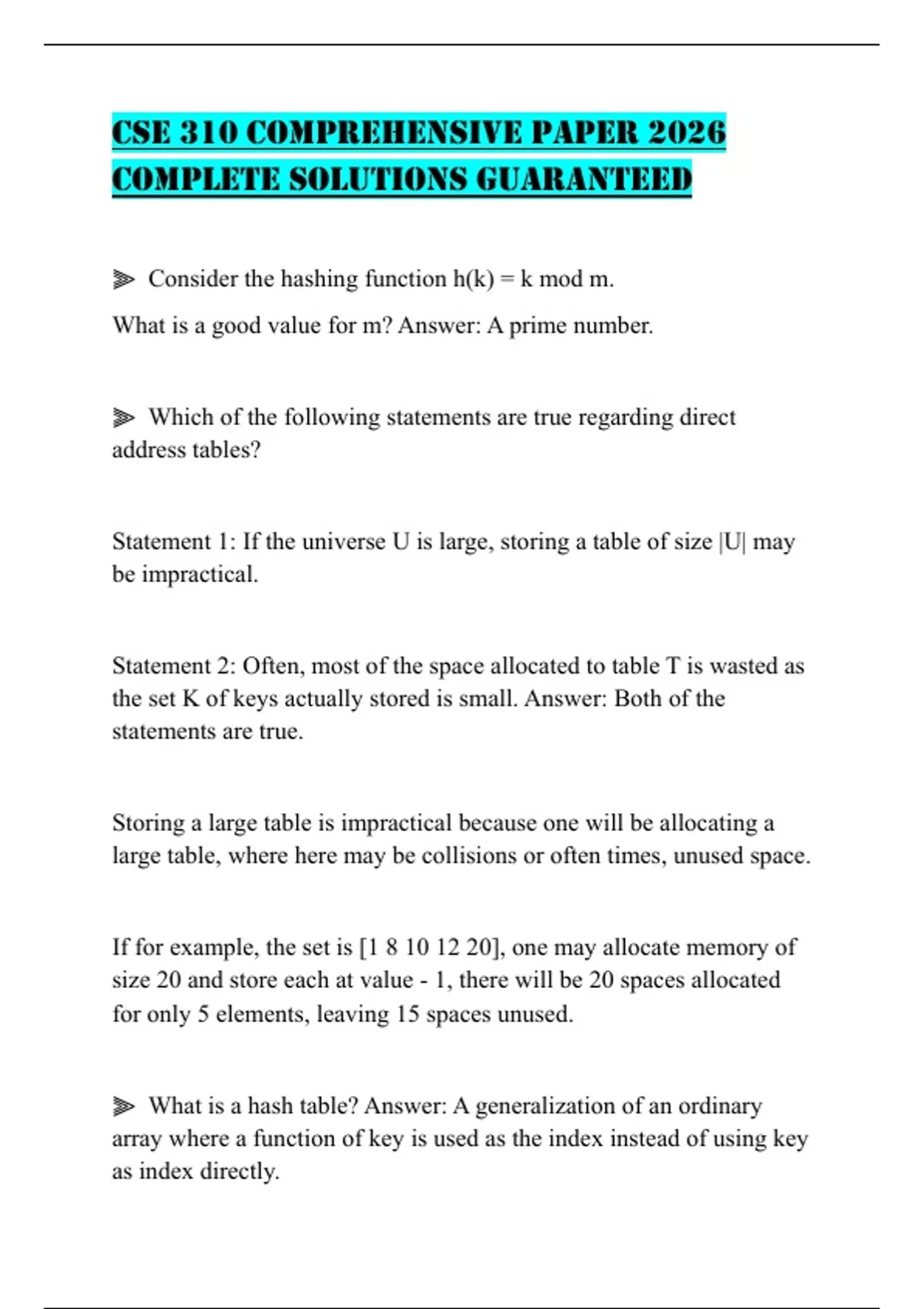 ⫸ What is true about hash tables? Answer: Collisions can happen