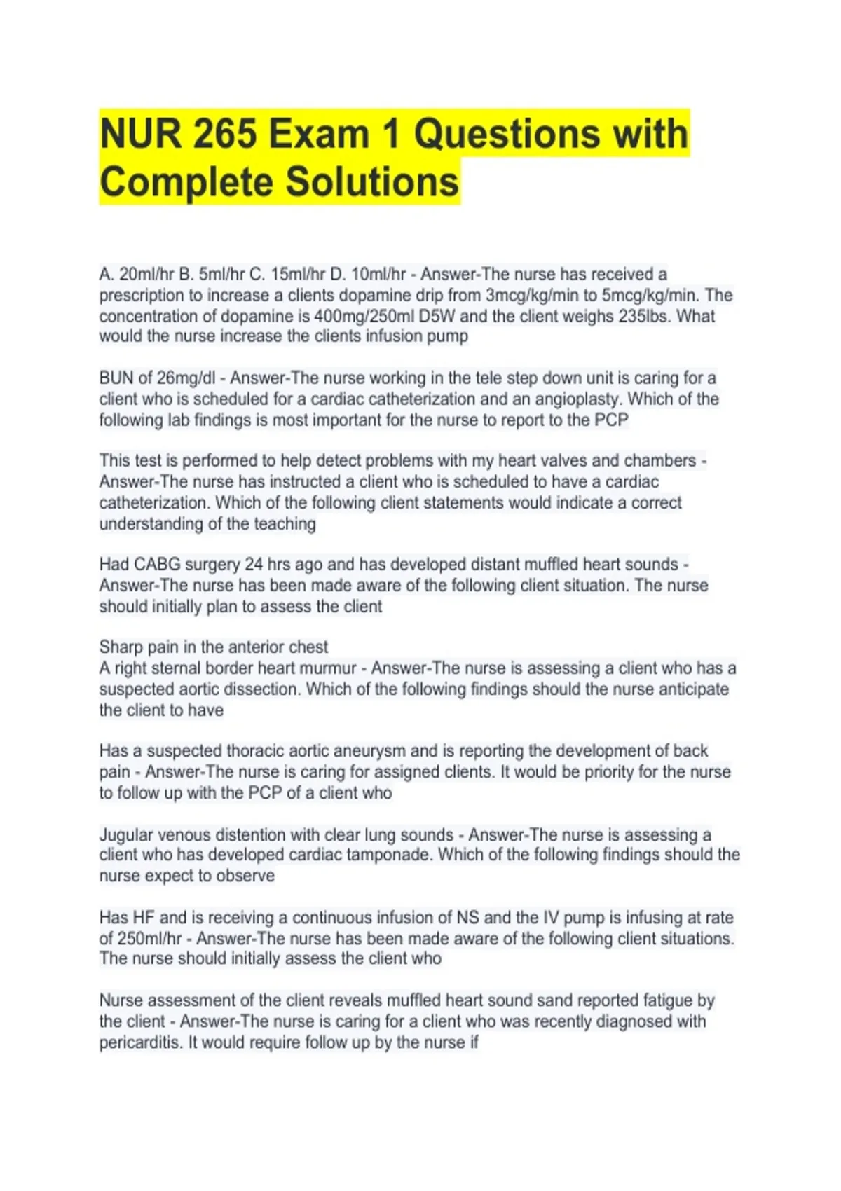 NUR 265 Exam 1 Questions with Complete Solutions