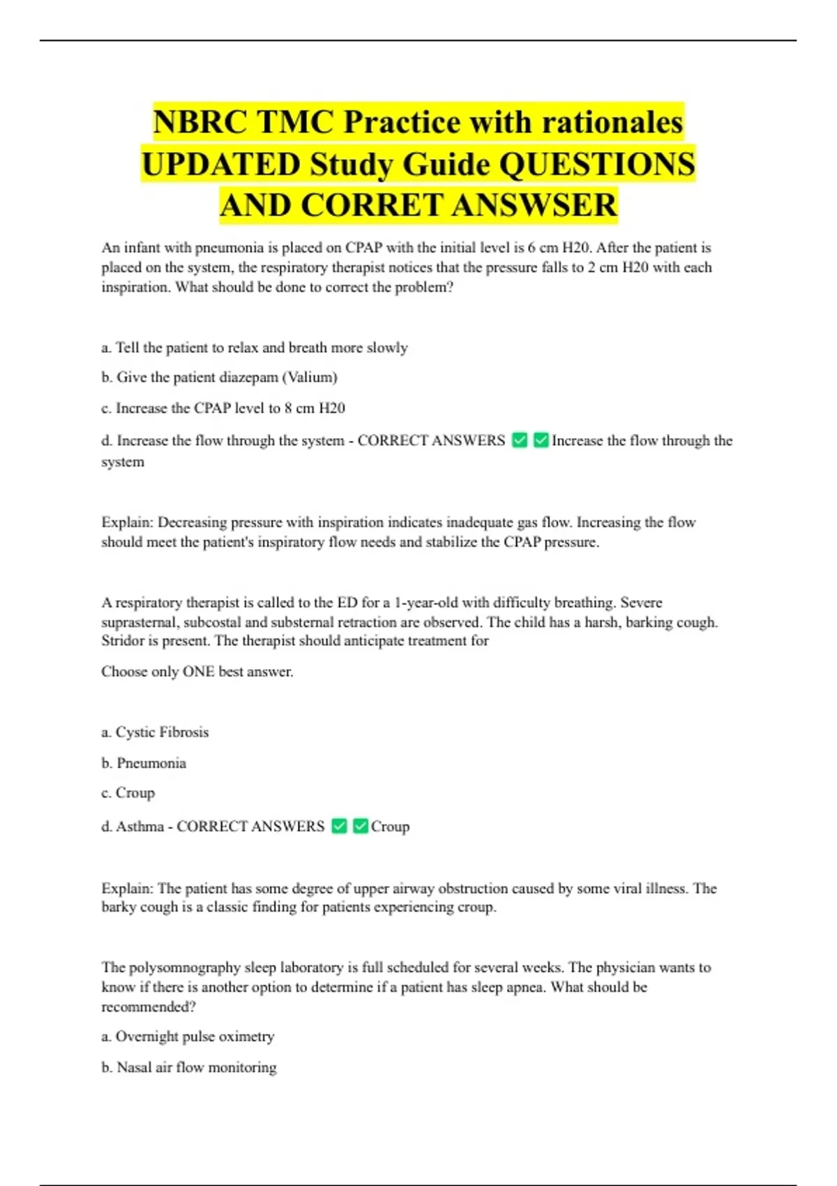 NBRC TMC Practice with rationales UPDATED Study Guide QUESTIONS AND CORRET ANSWSER