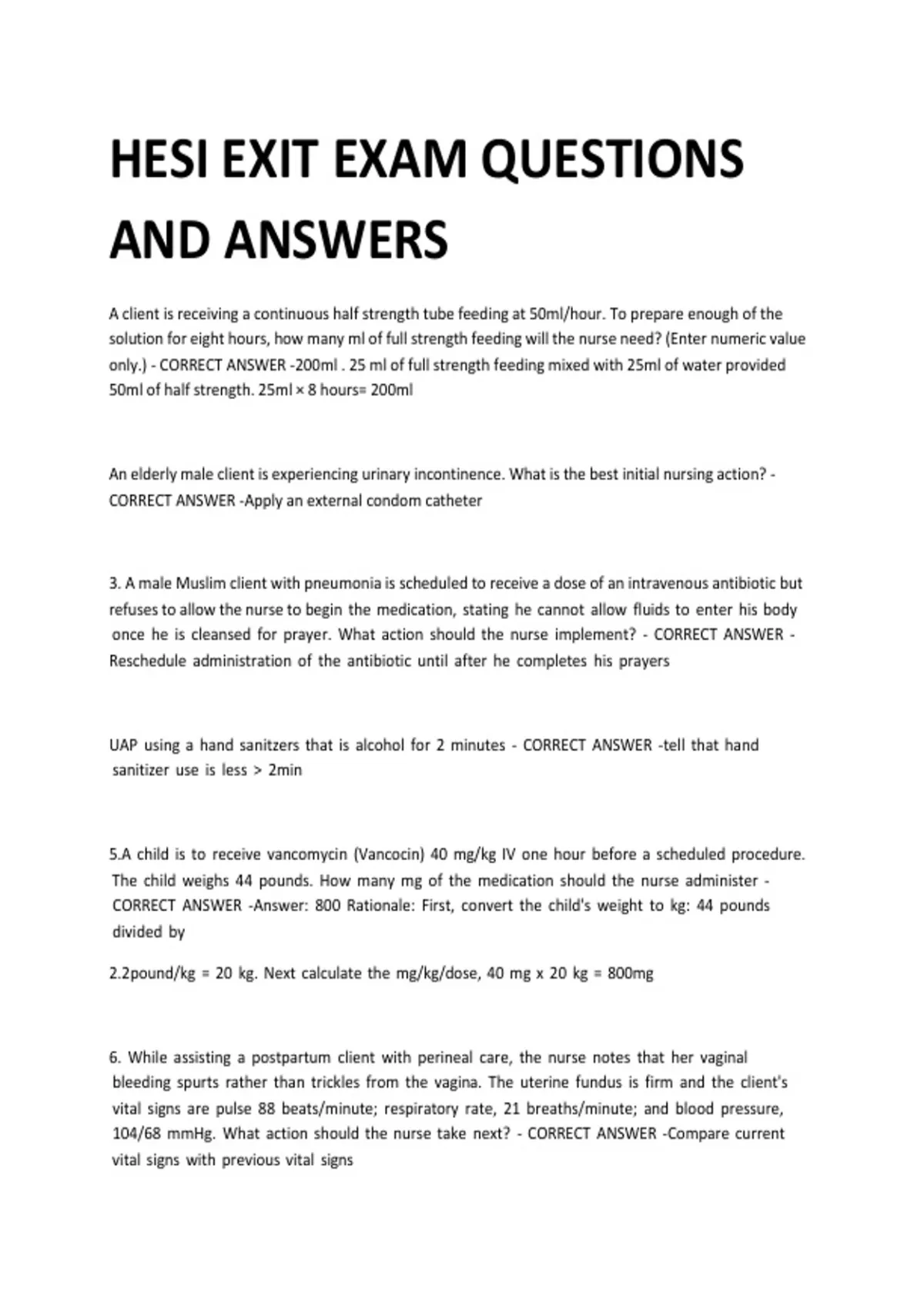 This HESI Exit Exam Questions and Verified Answers (2026 Edition) is a comprehensive and practical resource for nursing students preparing for the HESI Exit Exam. The guide includes exam-style questions with verified answers.