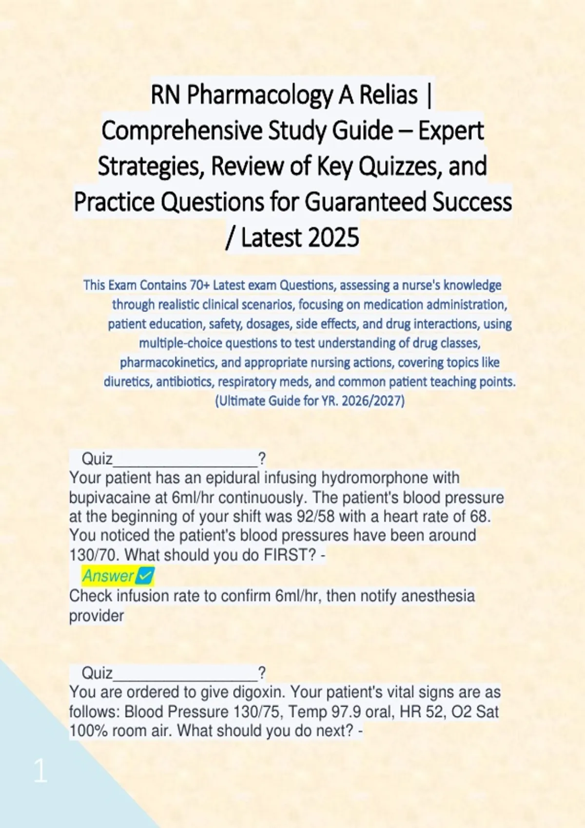 This Exam Contains 70+ Latest exam Questions, assessing a nurse's knowledge