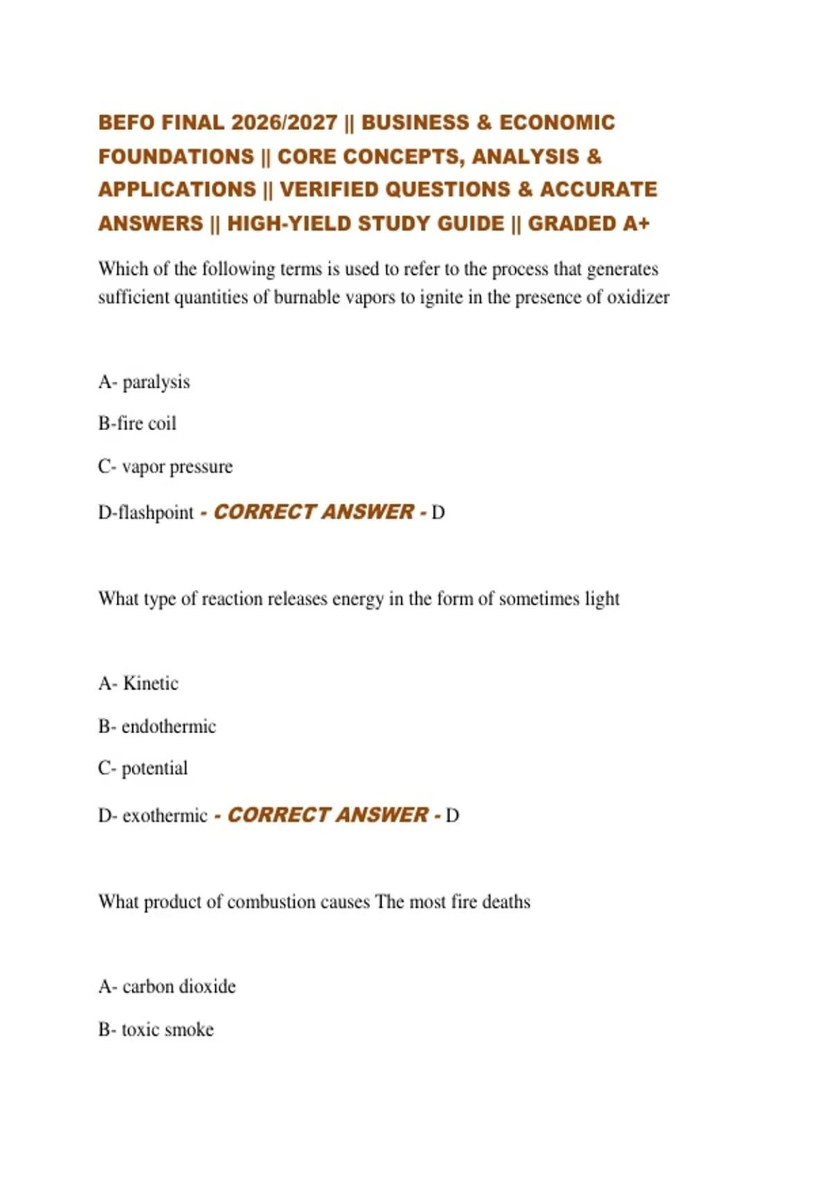 ANSWERS || HIGH-YIELD STUDY GUIDE || GRADED A+