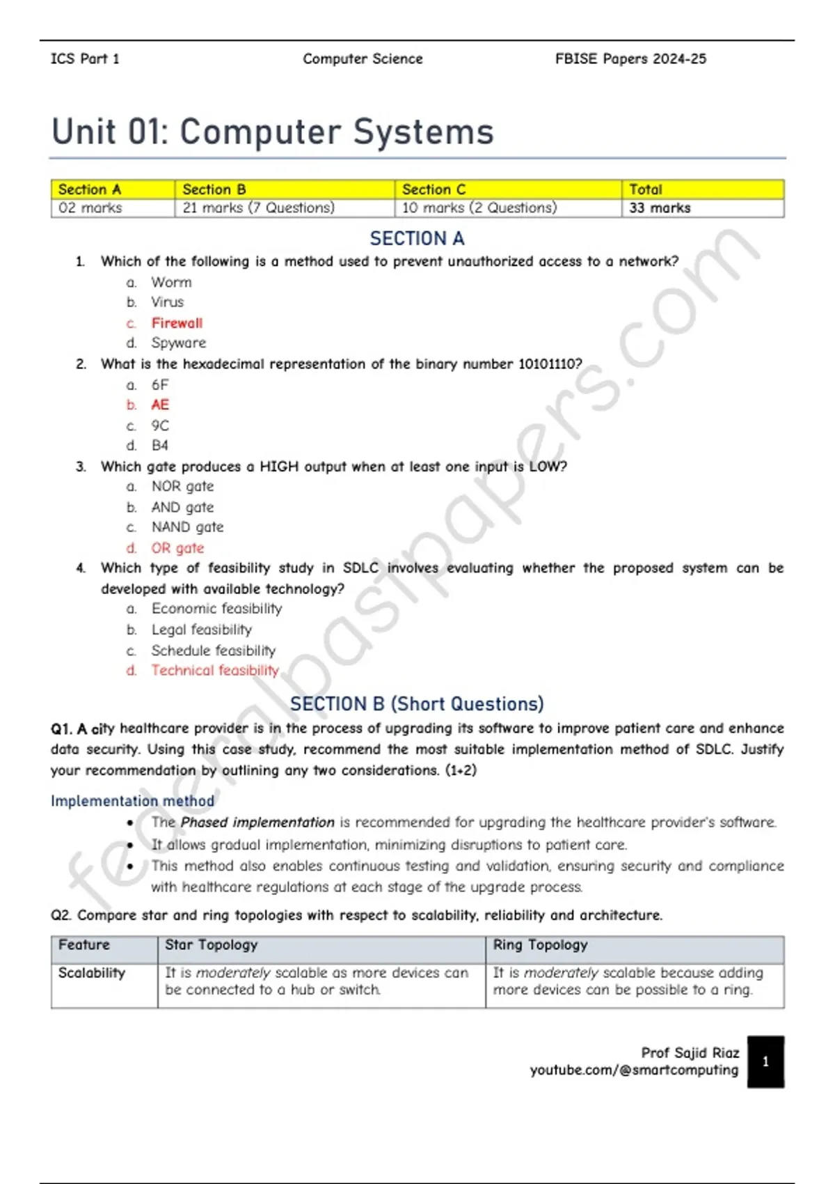 ,ICS Part 1 Computer Science FBISE Papers 2024-25